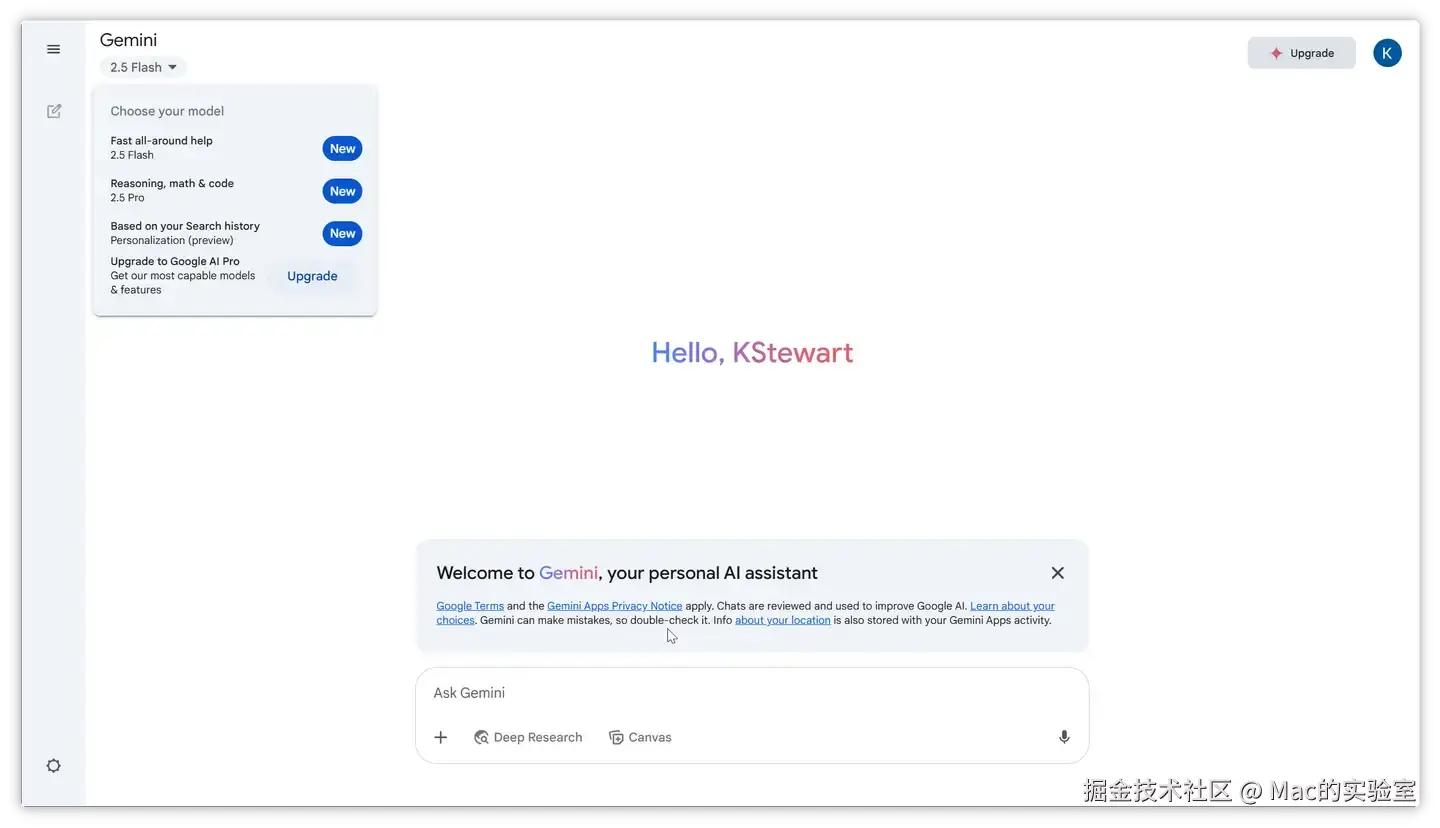 觉得麻烦不想折腾的同学也可以在公众号:Mac的实验室 后台回复 ai 获取开通Gemini资格几分钟就搞定了。