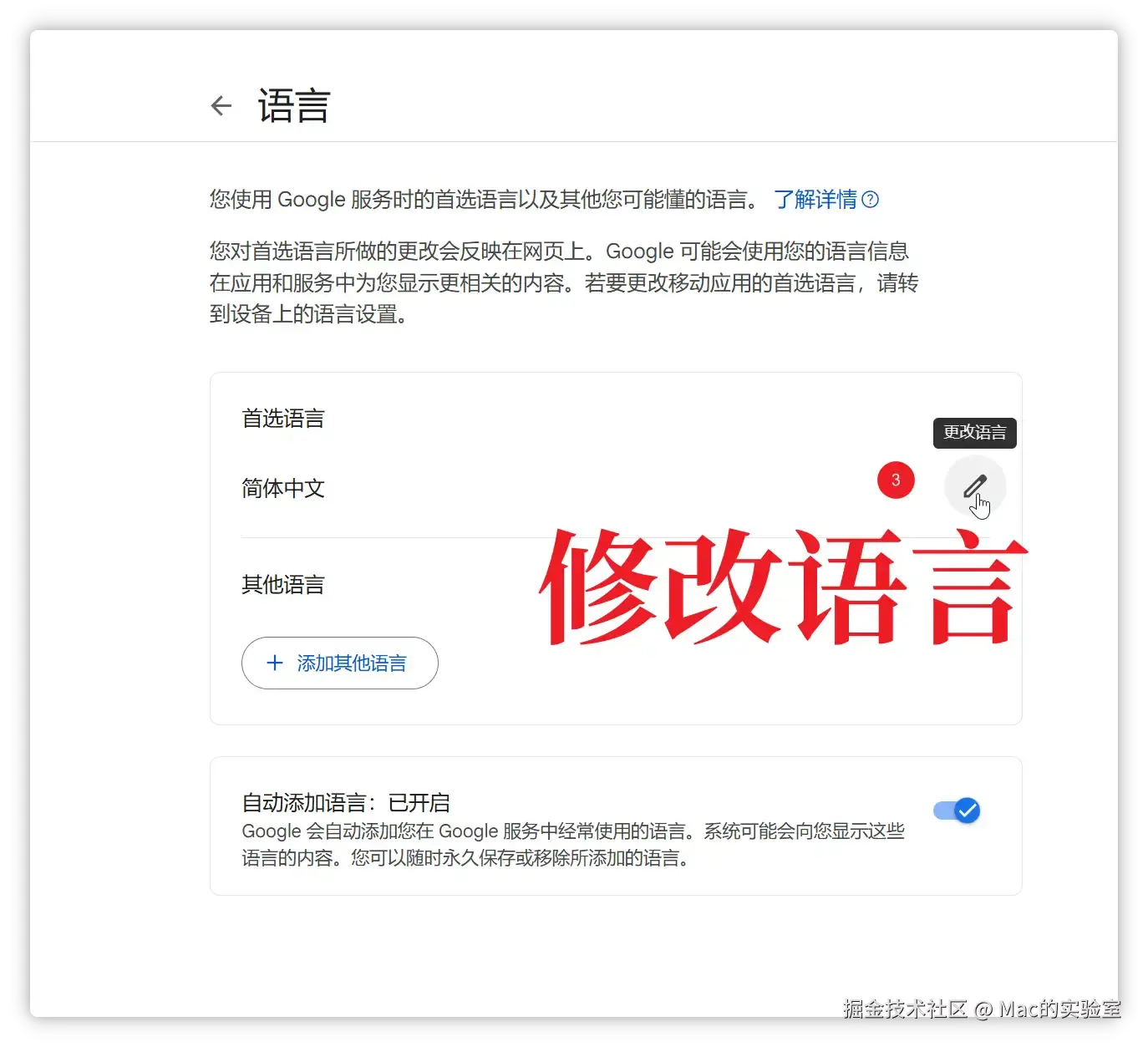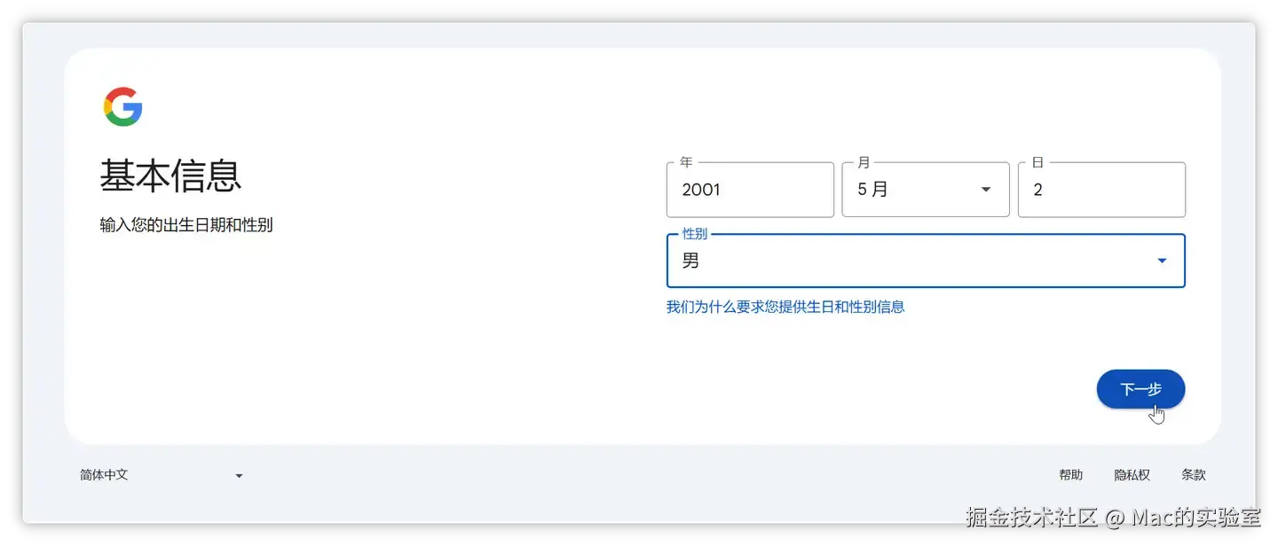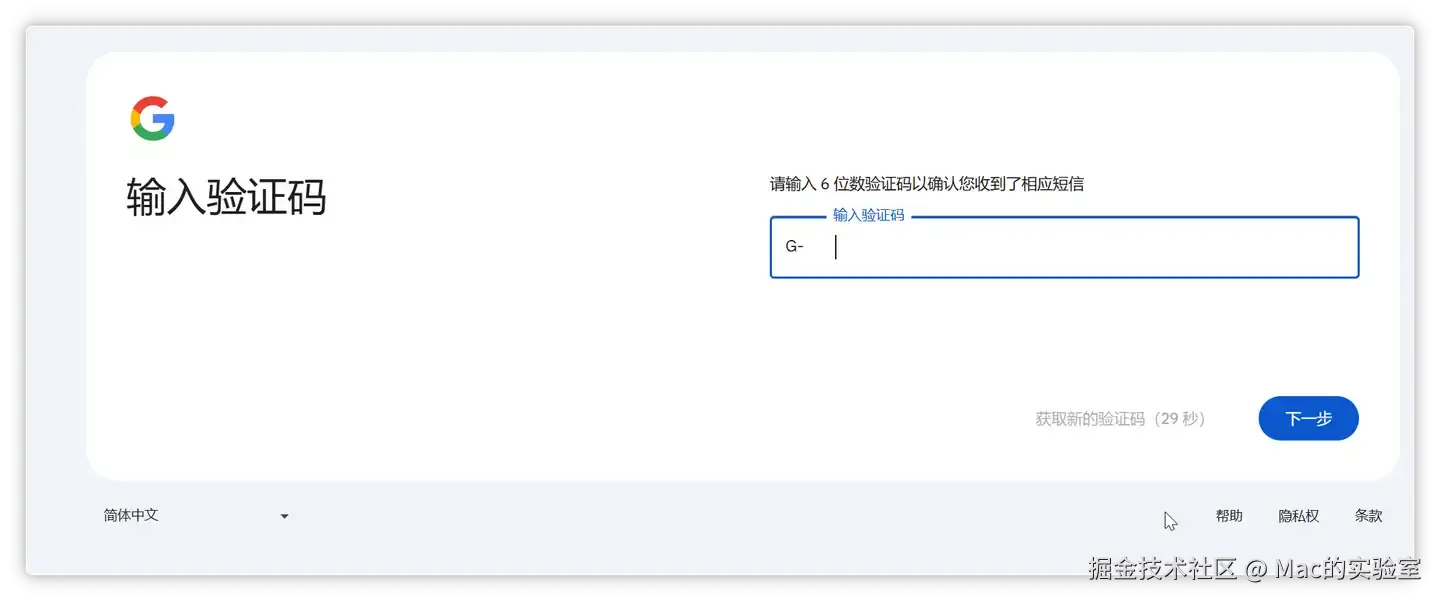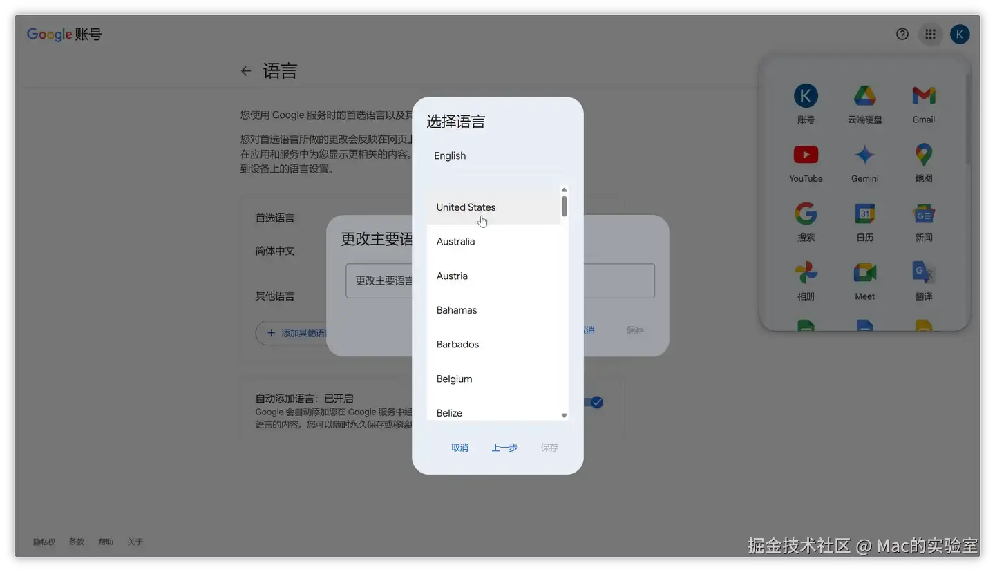 如果你卡在手机号无法验证这一步,可以修改Chrome浏览器的语言设置,修改为美国英文,然后重启浏览器再试。实在不行可以公众号:Mac的实验室 后台回复 ai 获取开通Gemini资格几分钟就搞定了。