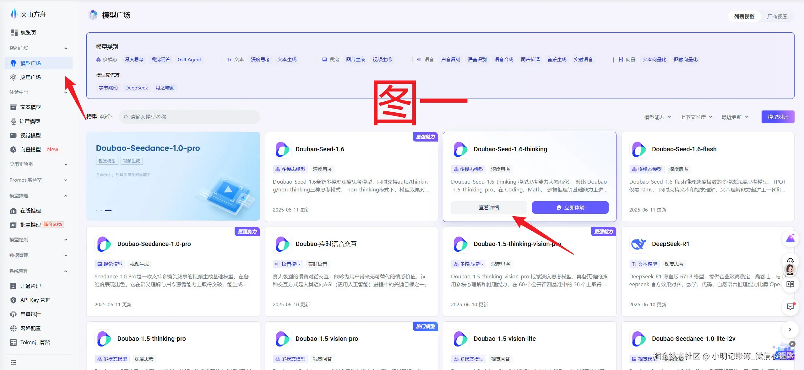 二、进入火山方舟管理控制台挑选自己中意的大模型: