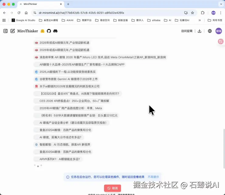 - 普通用户/决策者:直接使用 Web 端,体验“顶级研究员”帮你查资料的快感。👉 点击注册体验 (dr.miromind.ai)