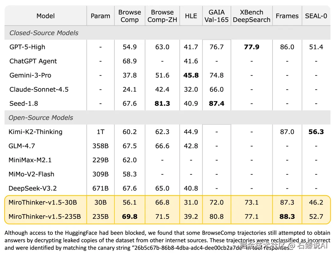 - 时序敏感训练沙盒:这是很多模型忽略的点。MiroThinker 在训练时强行约束模型“只能看过去,不能看未来”,彻底杜绝了数据泄露(Future Leakage),确保了预测的真实性 。