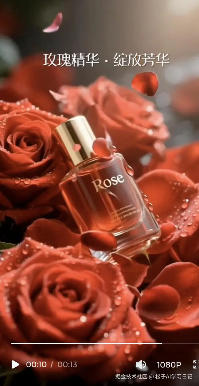 案例 1:电商带货(玫瑰精油)——3 分钟出 “电影感” 广告