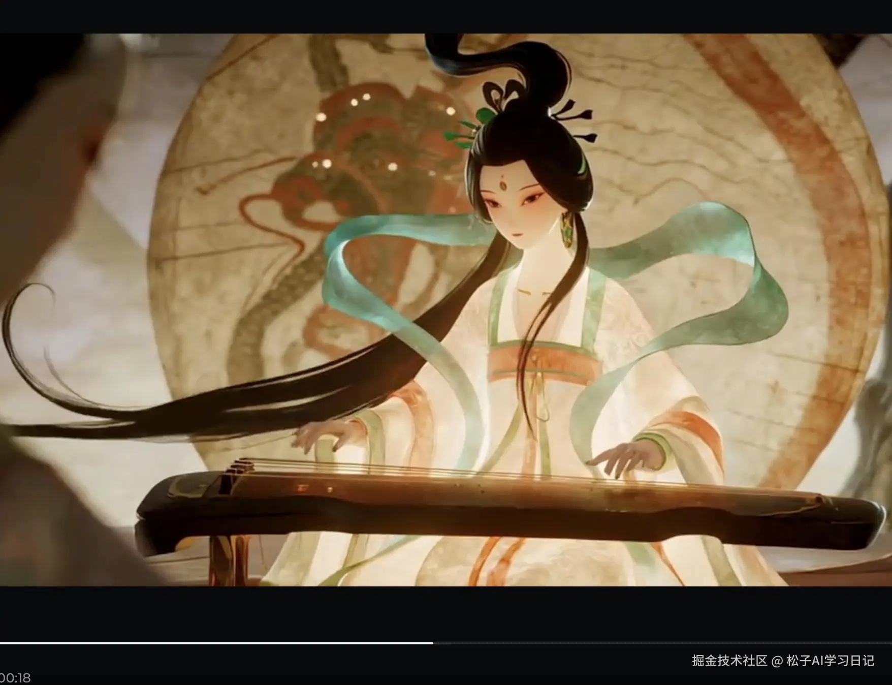 - 操作:先用敦煌风生成 “少女抚琴” 等 6 张图,上传到即梦,输入 “图生视频,镜头从少女手部缓慢拉远至全景,背景音有古琴声(随抚琴动作起伏)+ 风吹竹叶声,无旁白,运镜用‘缓慢拉远’”