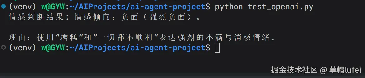 (venv) w@GYW:~/AIProjects/ai-agent-project$ python test_openai.py