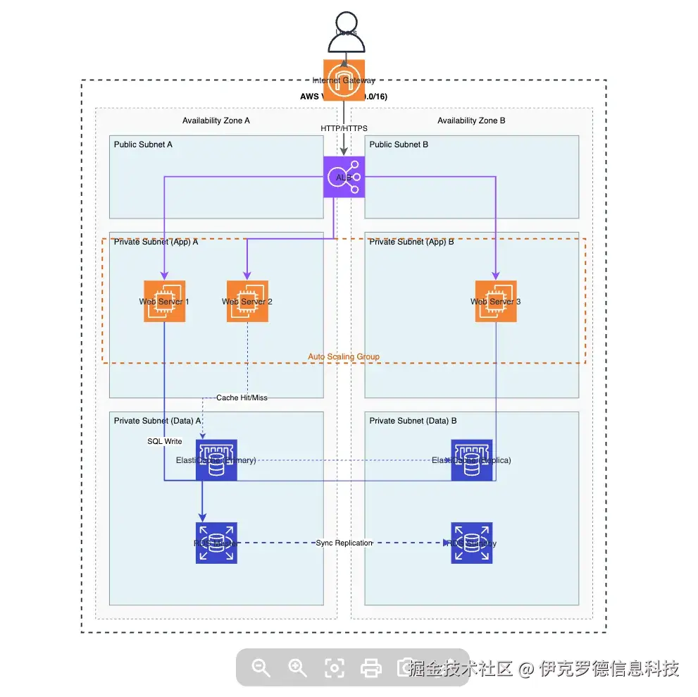 例如:“设计一个高可用 Web 应用,前端通过 ALB 分发流量,后端由 3 个 EC2 实例组成 Auto Scaling Group,数据库使用 RDS 主从架构,并接入 ElastiCache 缓存。”
