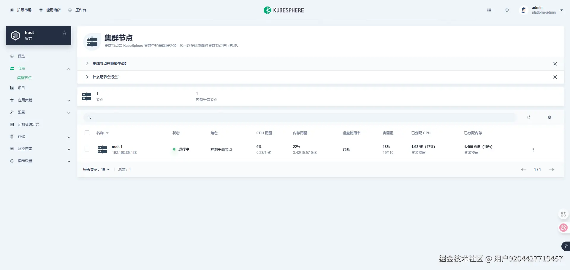 | node1 | x86_64 | Ubuntu24.04 | 4核16G | 192.168.85.138 |