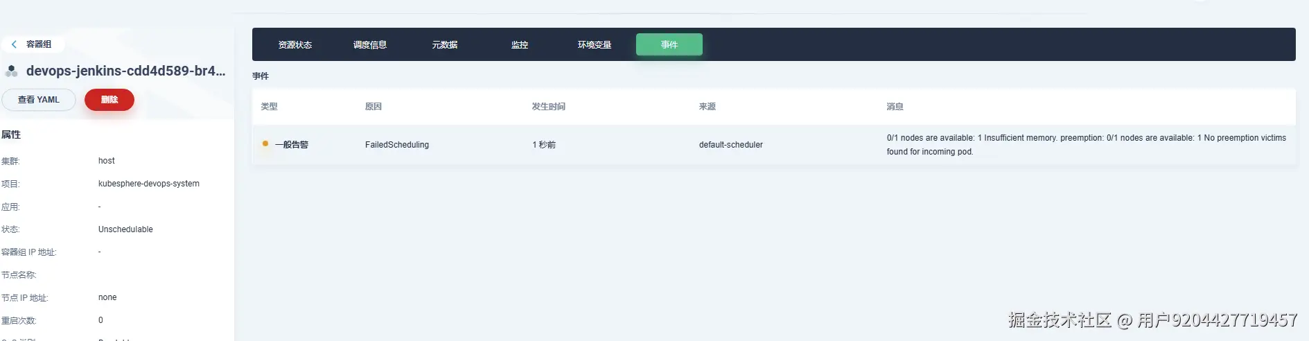 这里需要注意,由于devops比较吃资源,我们all in one的是4C8G,导致jenkins需要的资源不足