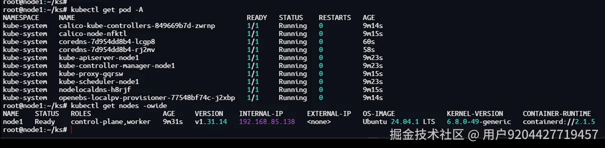 本文演示以Ubuntu刚装完系统离线环境下,all in one部署k8s 1.31.14+ks4.1.3(含全量组件)。