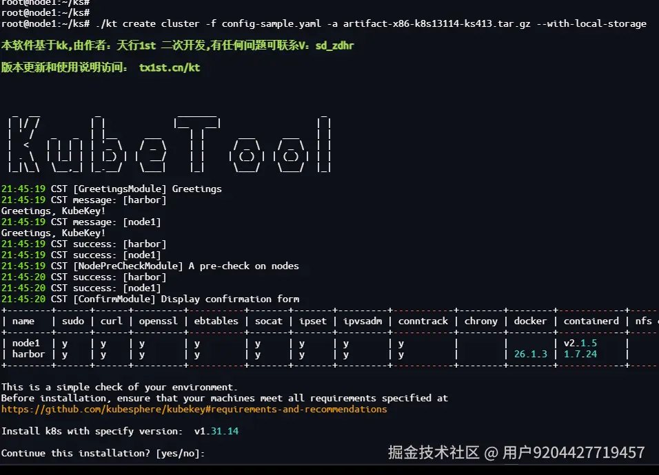 该命令kt会自动判断操作系统和架构以安装依赖项和进行必要的初始化配置。