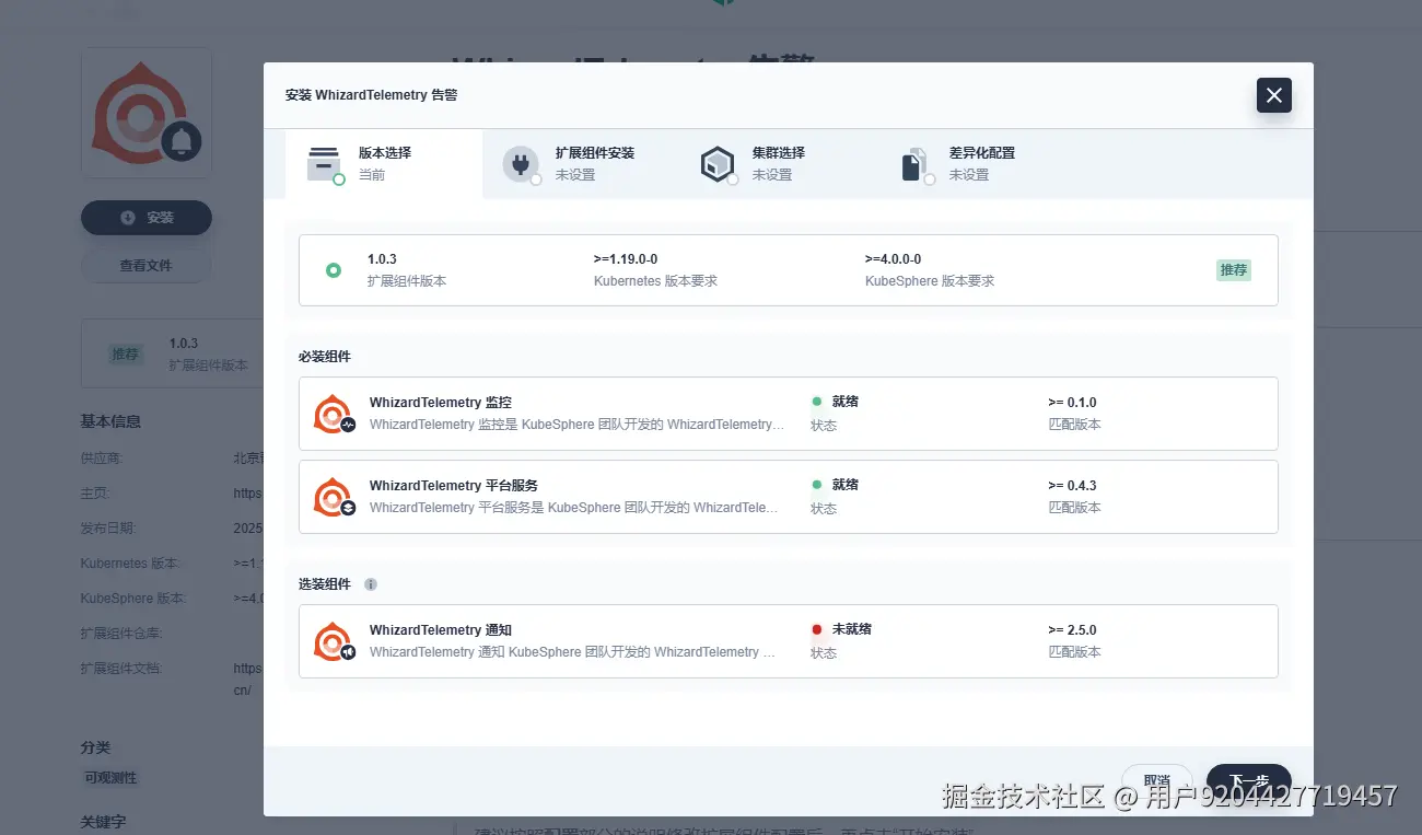 点击扩展市场后点击WhizardTelemetry 监控的管理