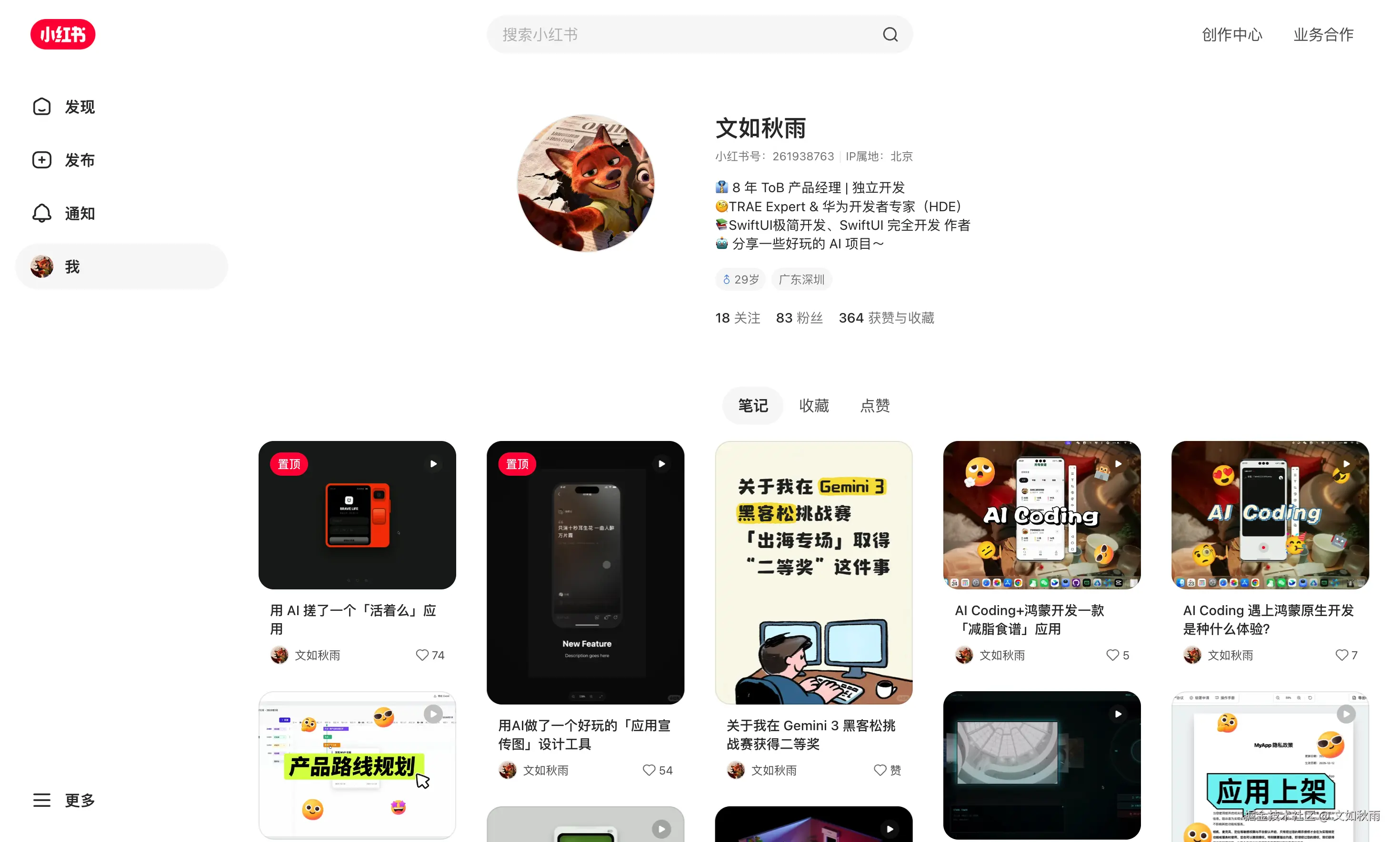 过往我所拥有的技能和知识,iOS、鸿蒙、AI Coding,我希望能够将三者结合起来,不再在 3 个领域分别钻研,而是找到一个合适的入口,比如小红书、B 站、图书出版等,来做知识储备和内容输出,希望在不断发展的 AI 时代中找到属于自己定位。