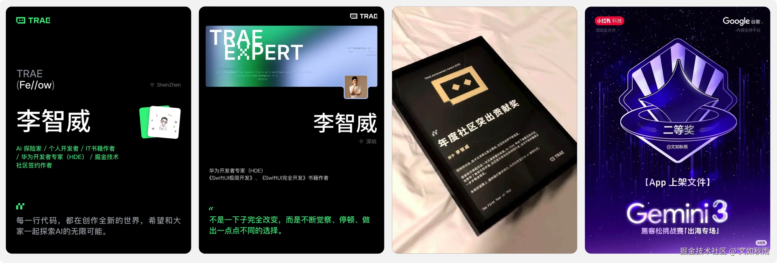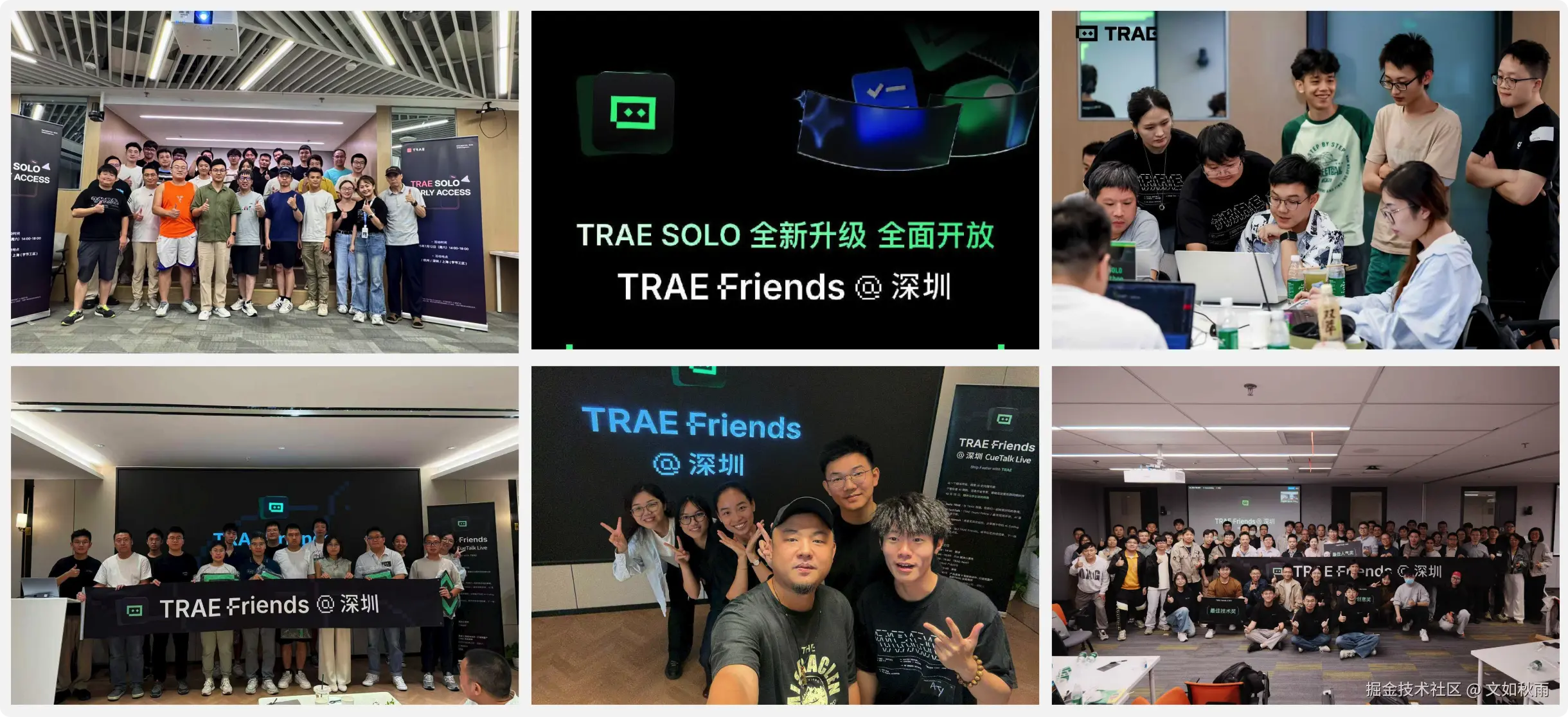于是乎在 2000 多人的筛选下,我成为了深圳的TRAE Fellow 和TRAE Expert,开始从参加活动、出席活动到组织活动,在 25 年开始了新的尝试。10 月的 TRAE Friends 深圳场的 Meetup,11 月的TRAE Solo Hackathon,一下子从一个人的“单打独斗”转变成了与更多 AI 爱好者们一起探索和沟通,有点开启了打怪升级的新篇章。