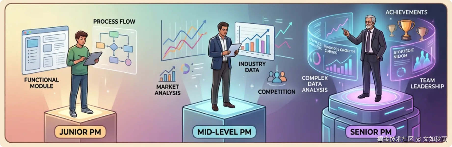 职场有时候真的很奇怪,你得要有超出中高级产品的能力和技能、经验、背书,才能去应聘中高级产品,而不是像游戏一样升级打怪积累到一定水平就自动升级,而且这其中到底需要具备什么明确的条件也缺少能够明确量化的指标。