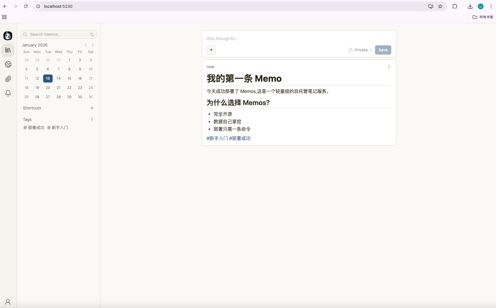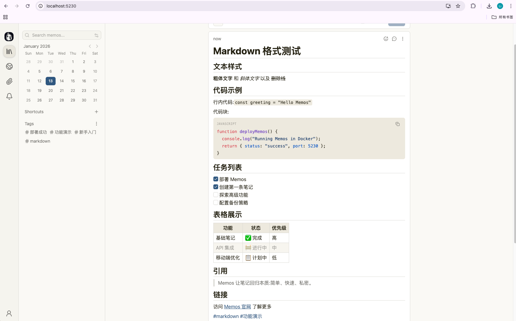 今天成功部署了 Memos,这是一个轻量级的自托管笔记服务。