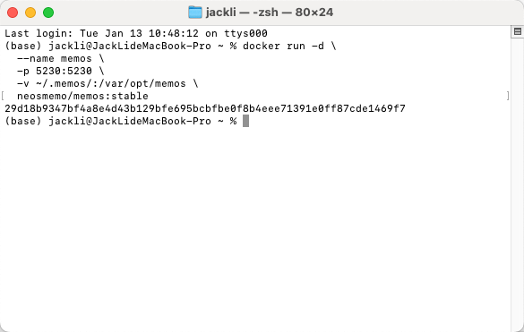 执行 docker-compose up -d 即可启动。MySQL 会自动创建数据库,Memos 启动时执行 schema 迁移。