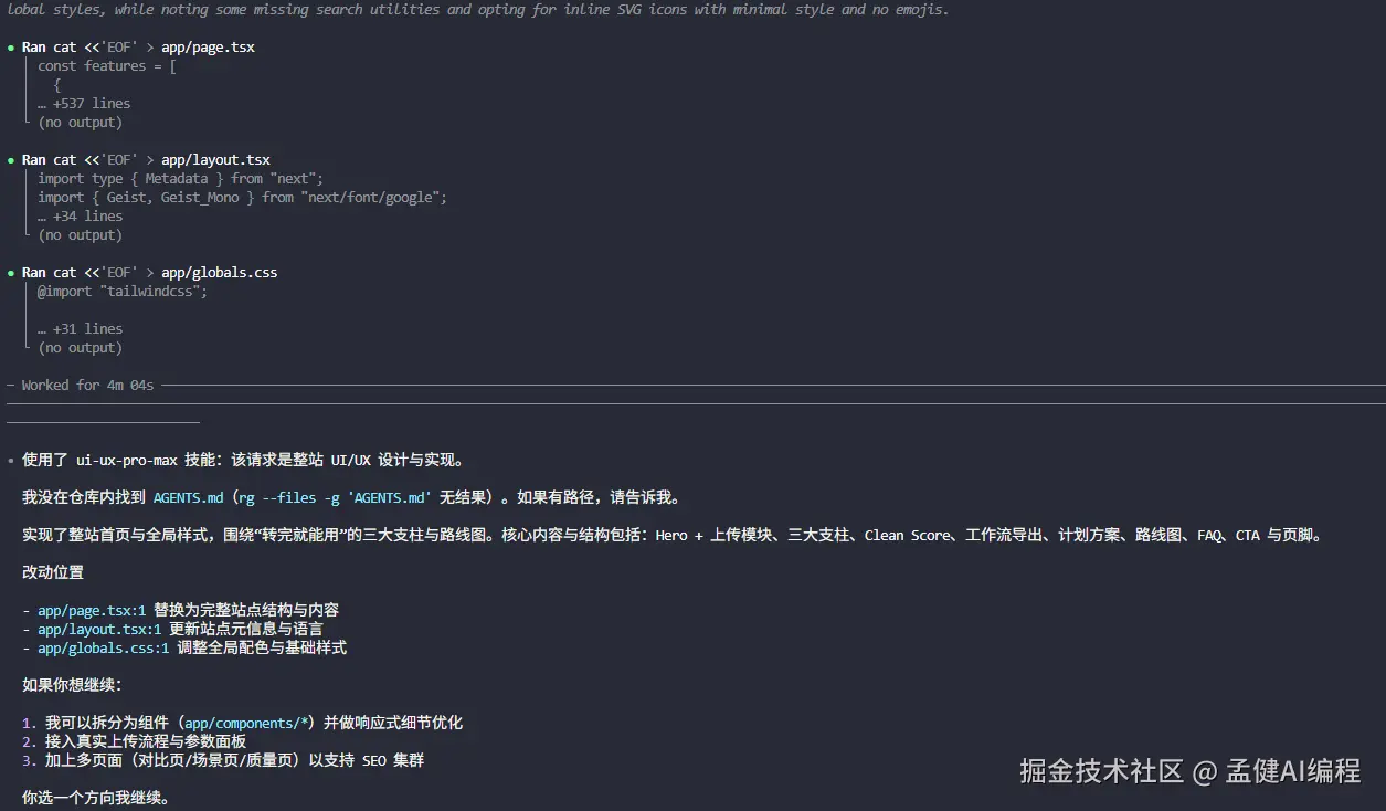 可以看到它在生成过程中会明确显示调用了这个 Skill,产物如下: