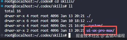 如果安装成功,进入 ~/.codex/skills 会看到一个新的 Skill 目录。