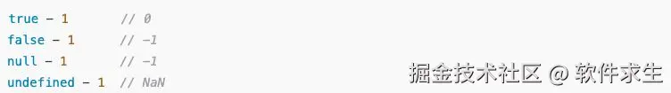 是不是发现了一个规律?减号和加号在“数值转换规则”上是一样的,但减号没有字符串拼接的特权。