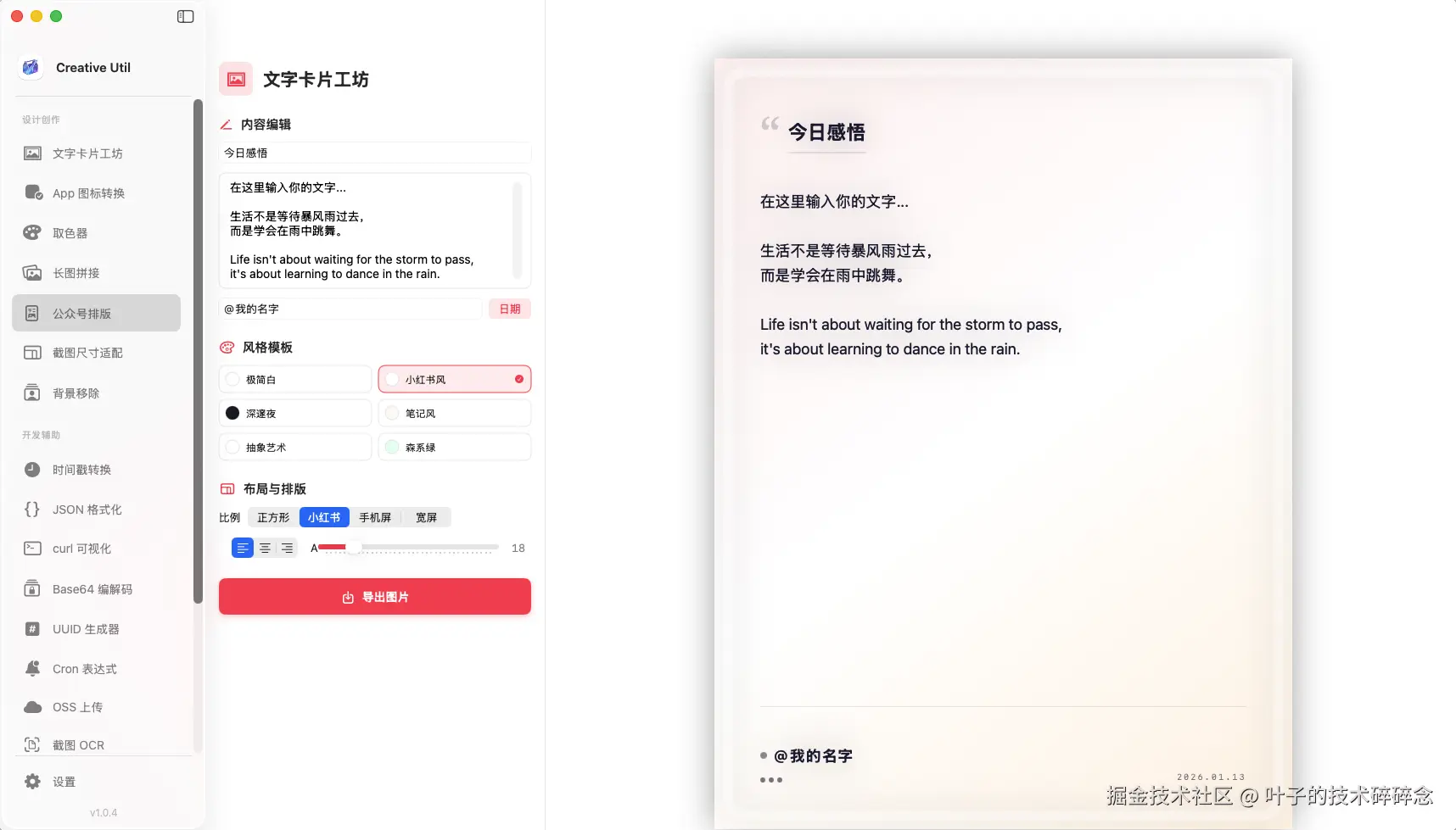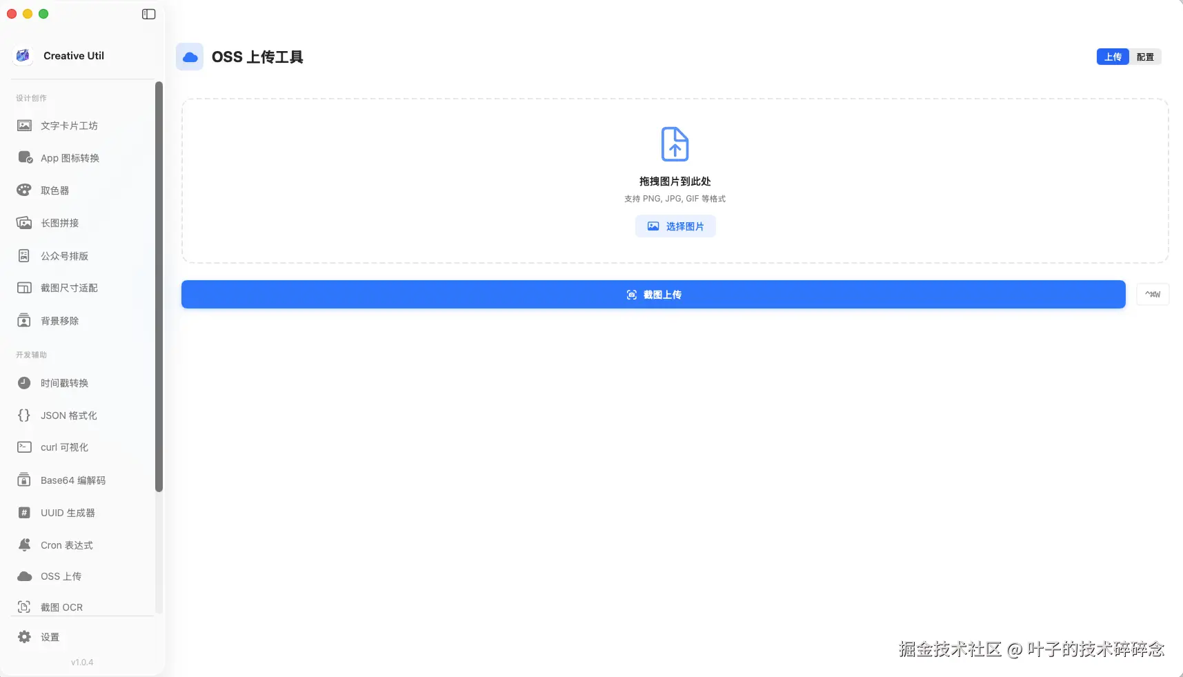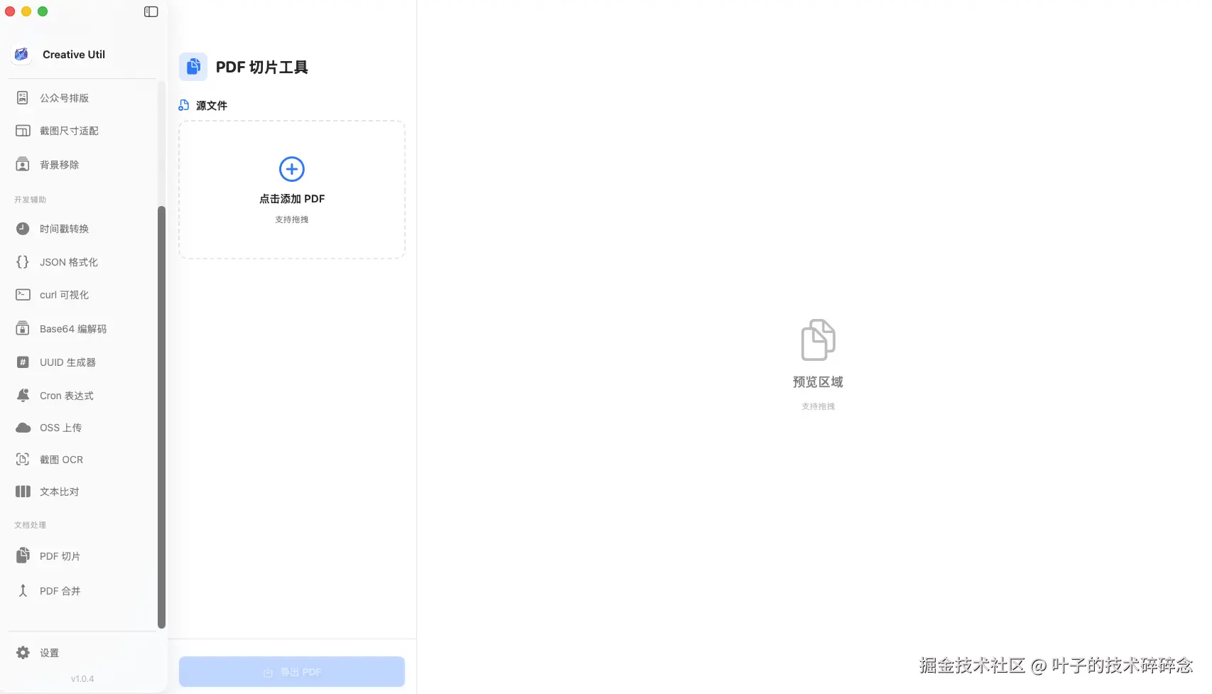 最近又开发了一款新的app:Creative Util,这次是只针对 Mac 平台开发的,因为平时不管是工作还是生活中,会需要用到很多小工具,包括什么markdown转公众号、OSS截图上传、取色、文档处理等等,一般来说要么使用utools这类工具,要么直接网上整一个在线网站临时处理一下,但还是希望能有一个本地的更完整的工具箱能完成自己的所有需求。纠结了一番,最终开发了这款app。包含了设计创作、开发辅助、文档处理三类工具集,目前已经囊括了常用的接近20种工具,后续也会陆陆续续继续增加更多的工具。