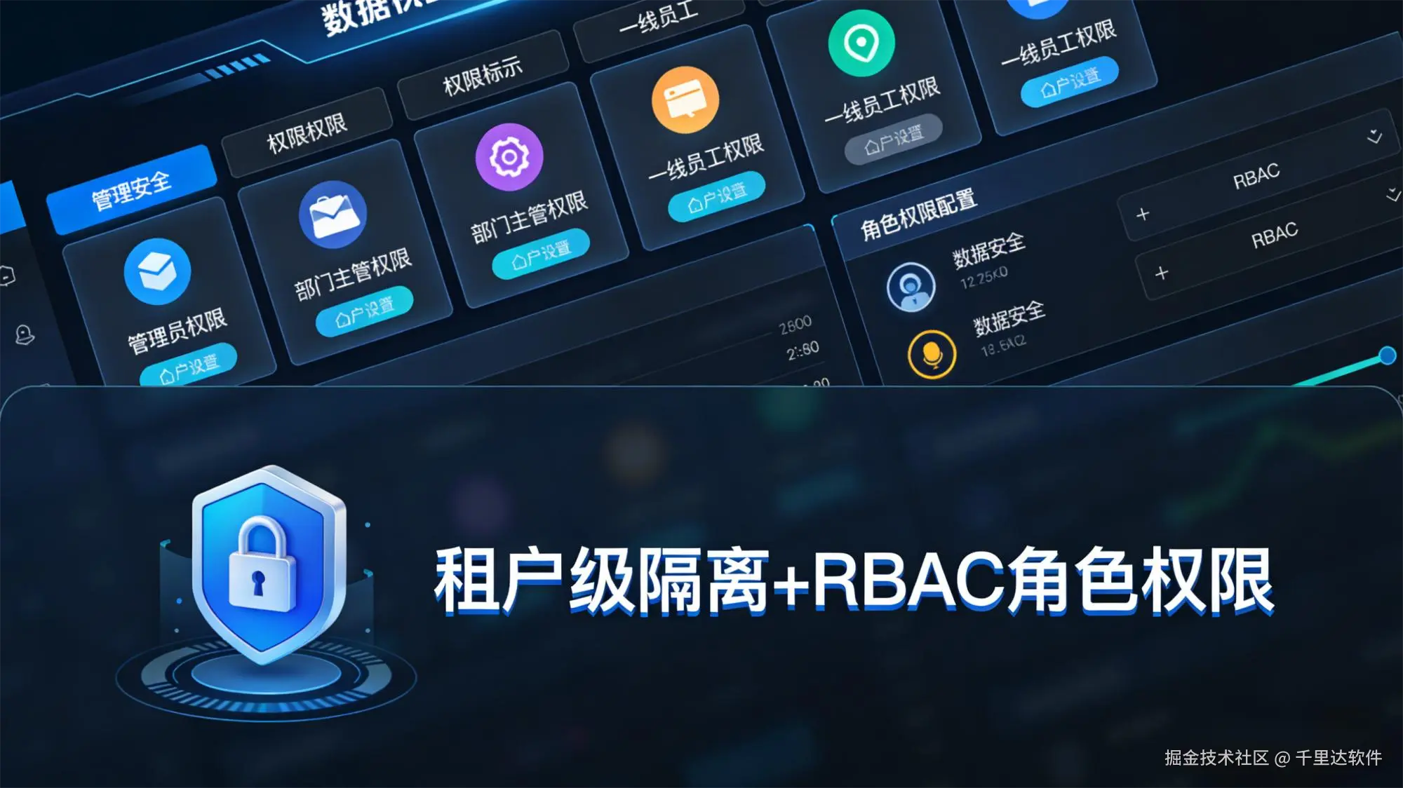 数据价值的安全释放,离不开严谨的权限管理。千里达软件深谙企业数据安全需求,采用“租户级数据隔离+RBAC角色权限”双重体系,构建全方位数据安全屏障。