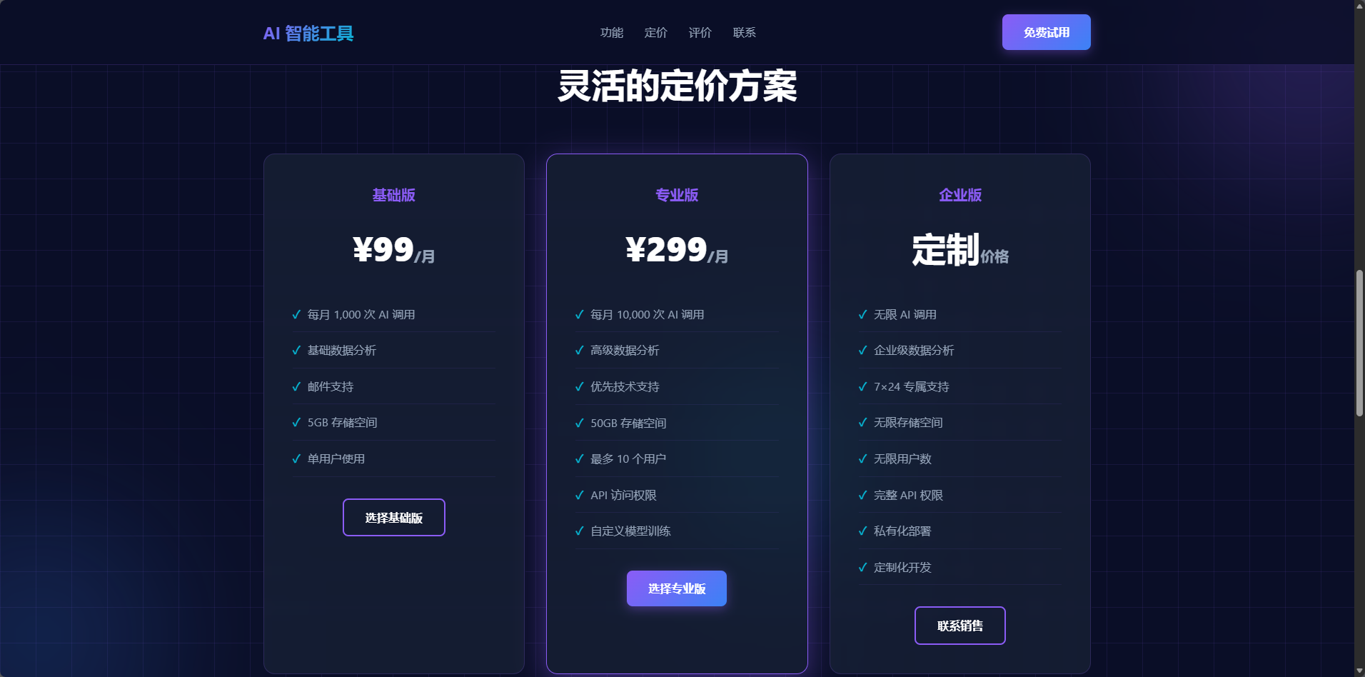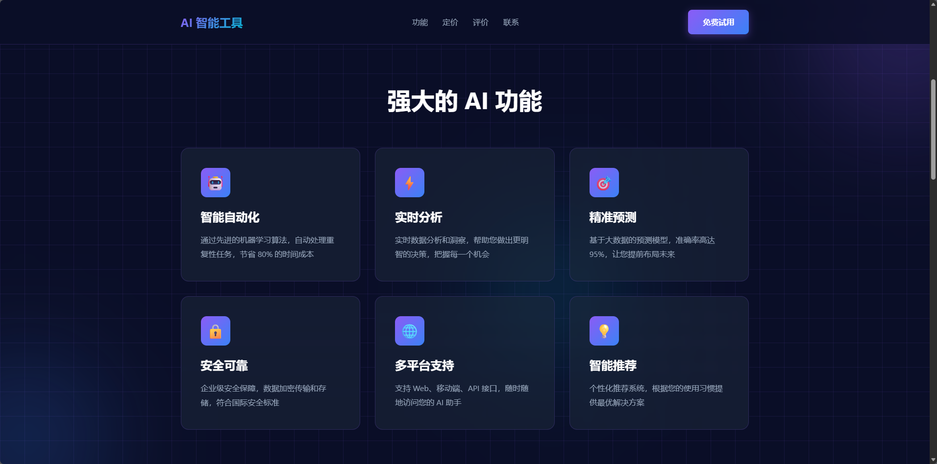 帮我做一个 AI 工具的 SaaS 落地页,要现代感、科技感