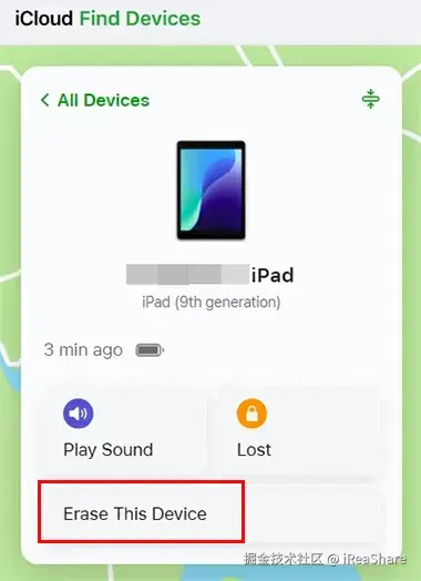 - 如果您使用了 iCloud 的远程擦除,请在另一台设备上仔细检查 iCloud.com/find 或“查找”应用程序,以确保您的 iPad 不再列在您的设备中,或者您在擦除完成后已明确“从帐户中移除”。