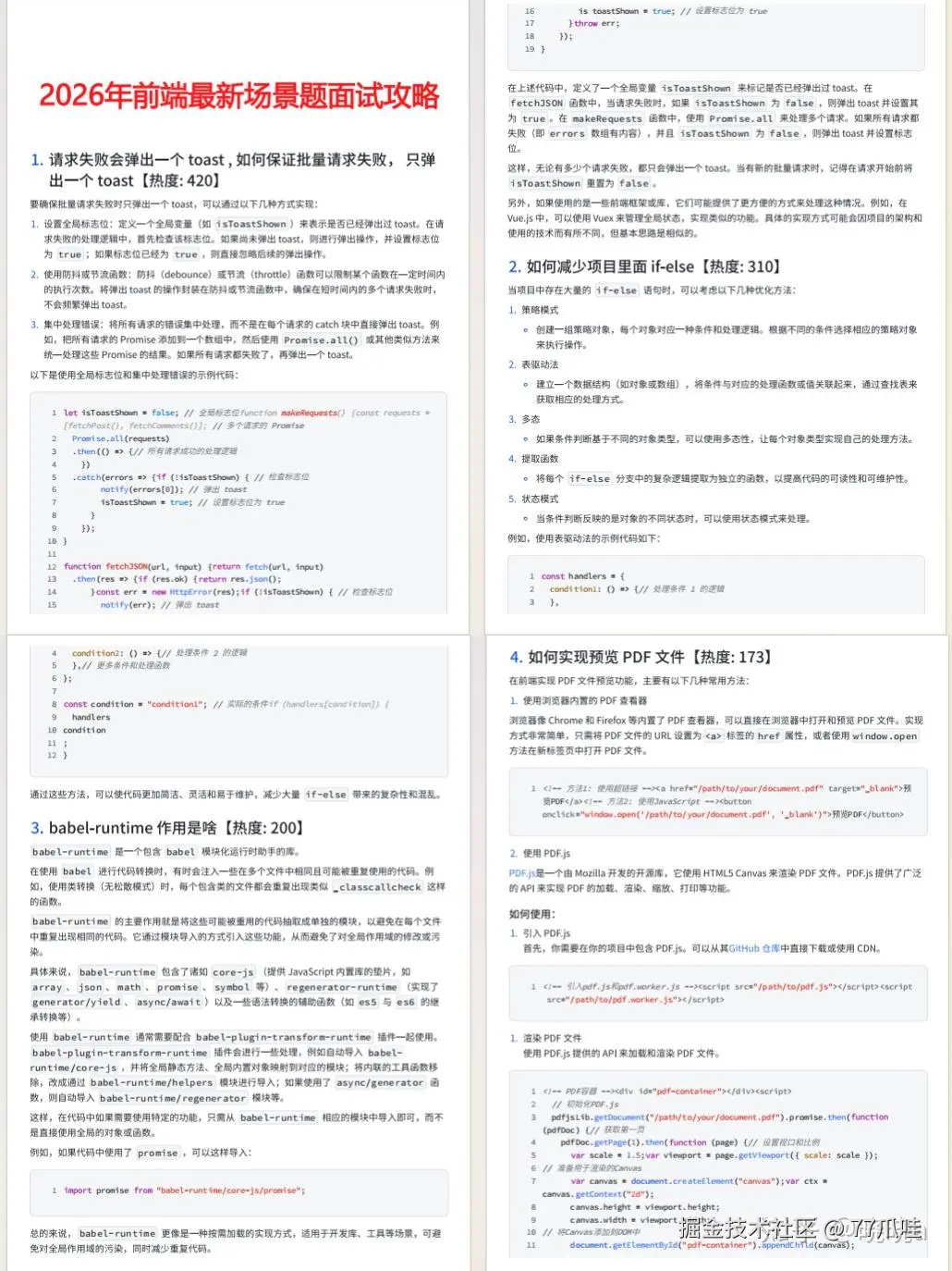 注:篇幅所限本文就只贴一下题目了,文中的前端场景面试题汇总PDF已经打包完毕,希望对大家有帮助: