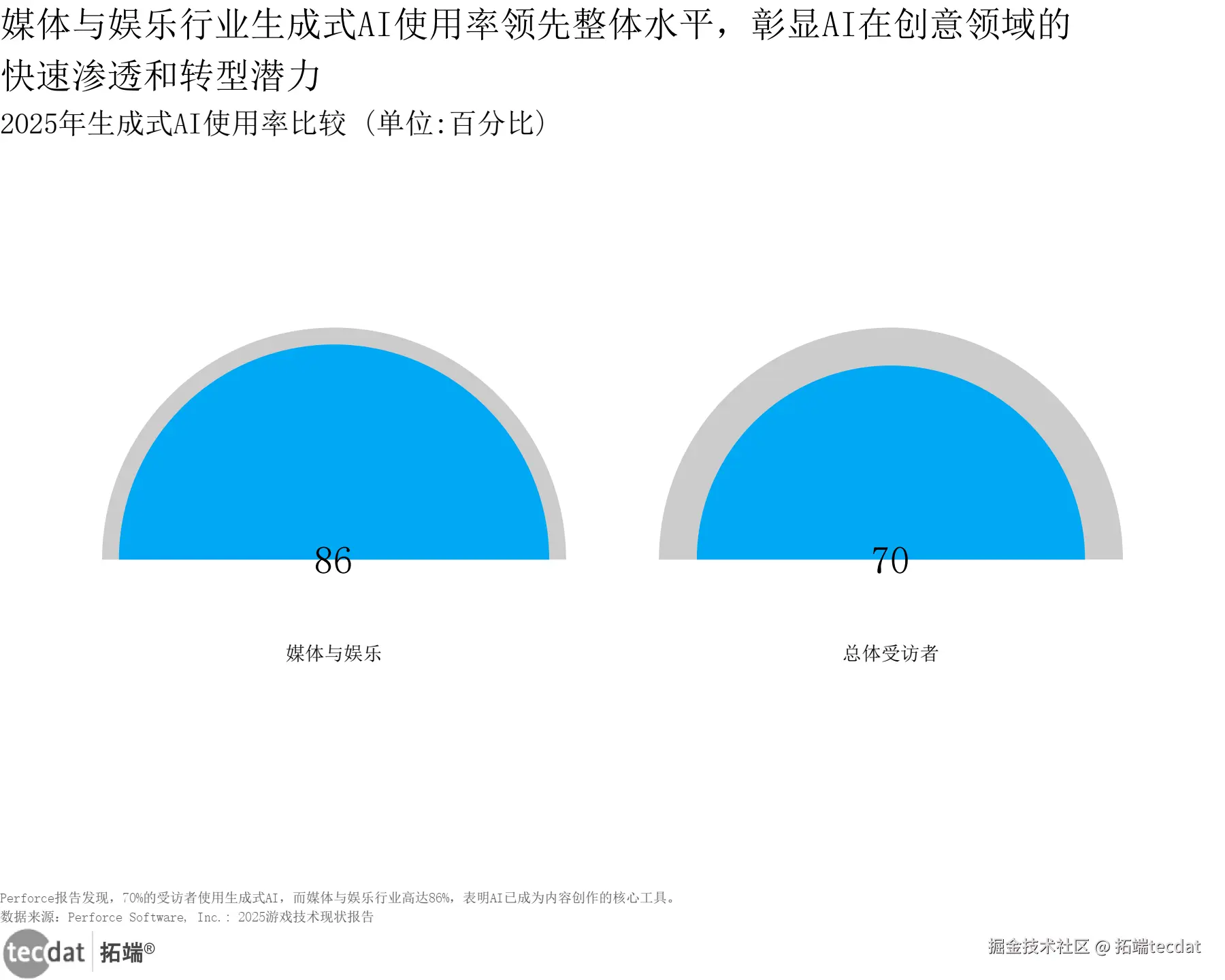 | 媒体与娱乐行业AI使用率 | 86% | Perforce《2025游戏技术现状报告》 |