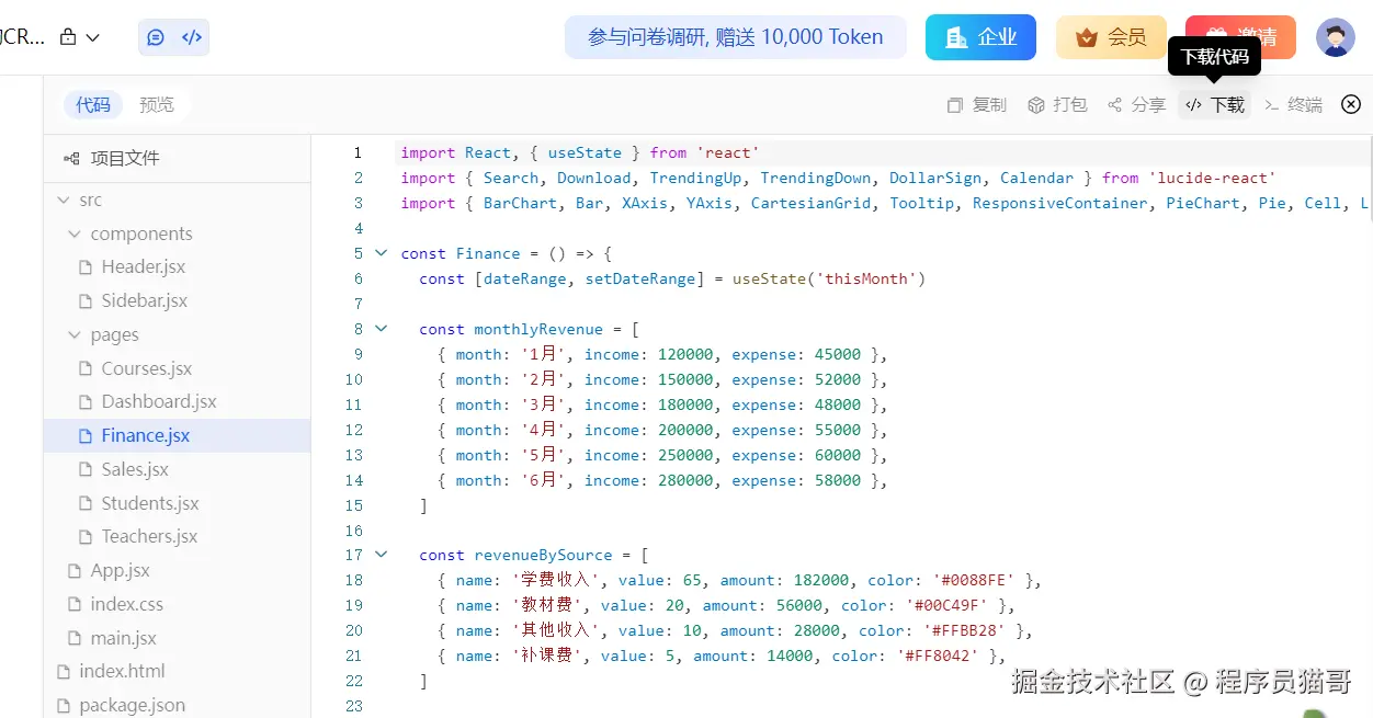 生成后的教育系统,不仅有漂亮的 Dashboard,甚至连“导出 Excel”这种细节功能都自带了。我把预览链接发给非技术出身的合伙人,他还以为是我花两周写出来的。