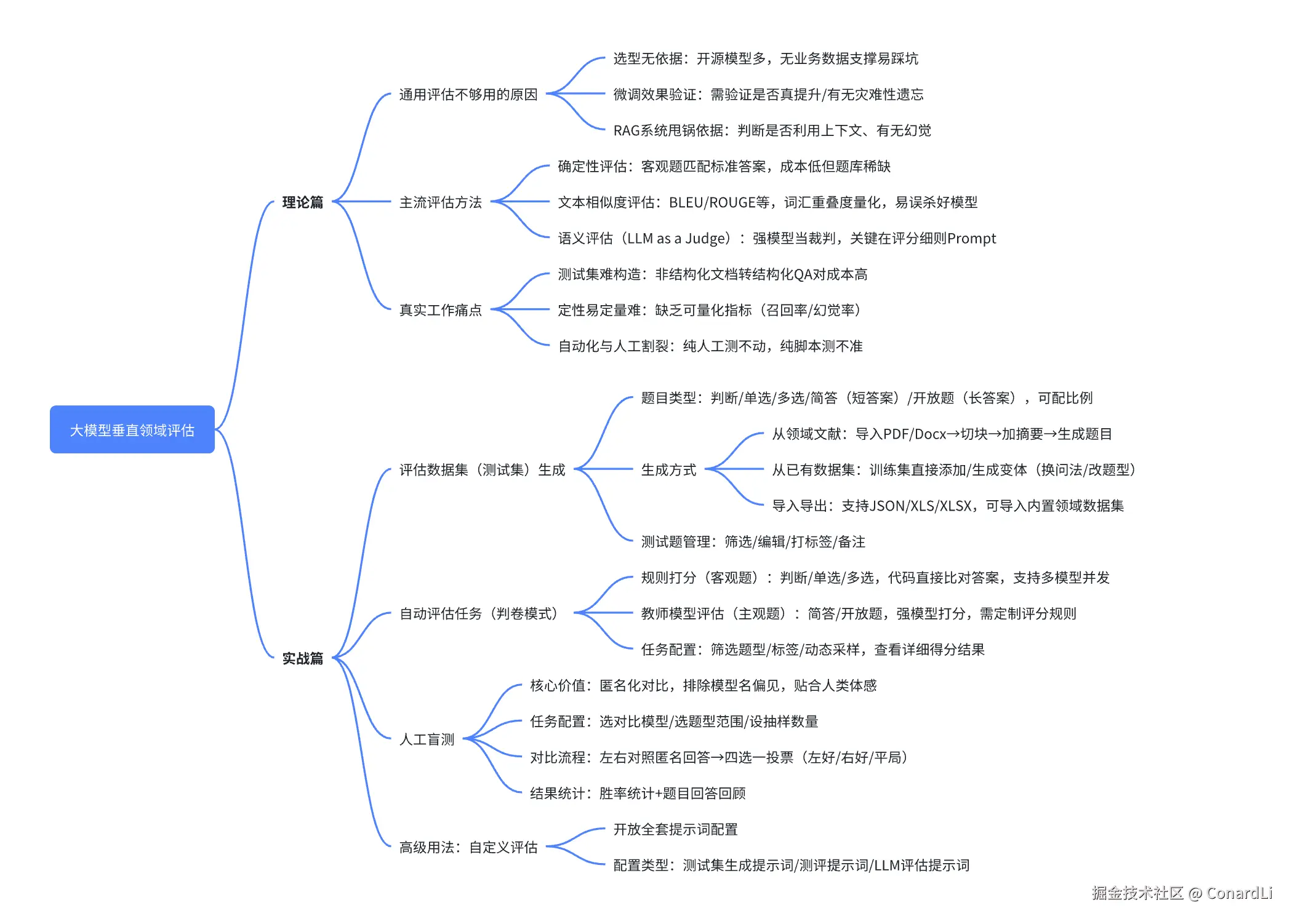 - 理解通用基准在垂直领域的局限性,明确评估的三大核心目标(选型验证、微调效果、RAG优化)