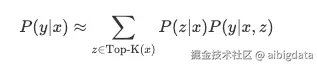 其中 z是检索到的外部知识,P(z∣x)P(z∣x) 代表检索的相关性,P(y∣x,z)P(y∣x,z) 代表基于检索内容生成的概率。