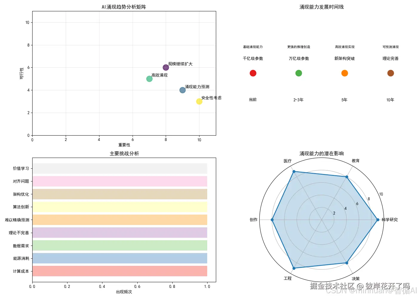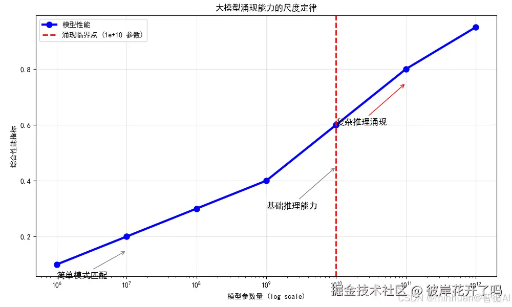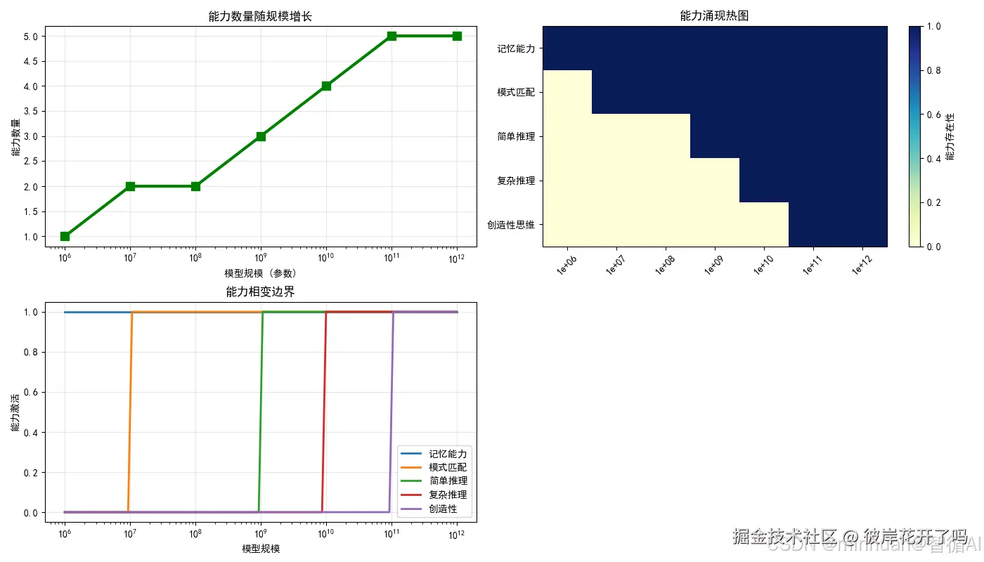 - 开花期(1000亿参数):突然开出美丽的花朵(复杂推理涌现)