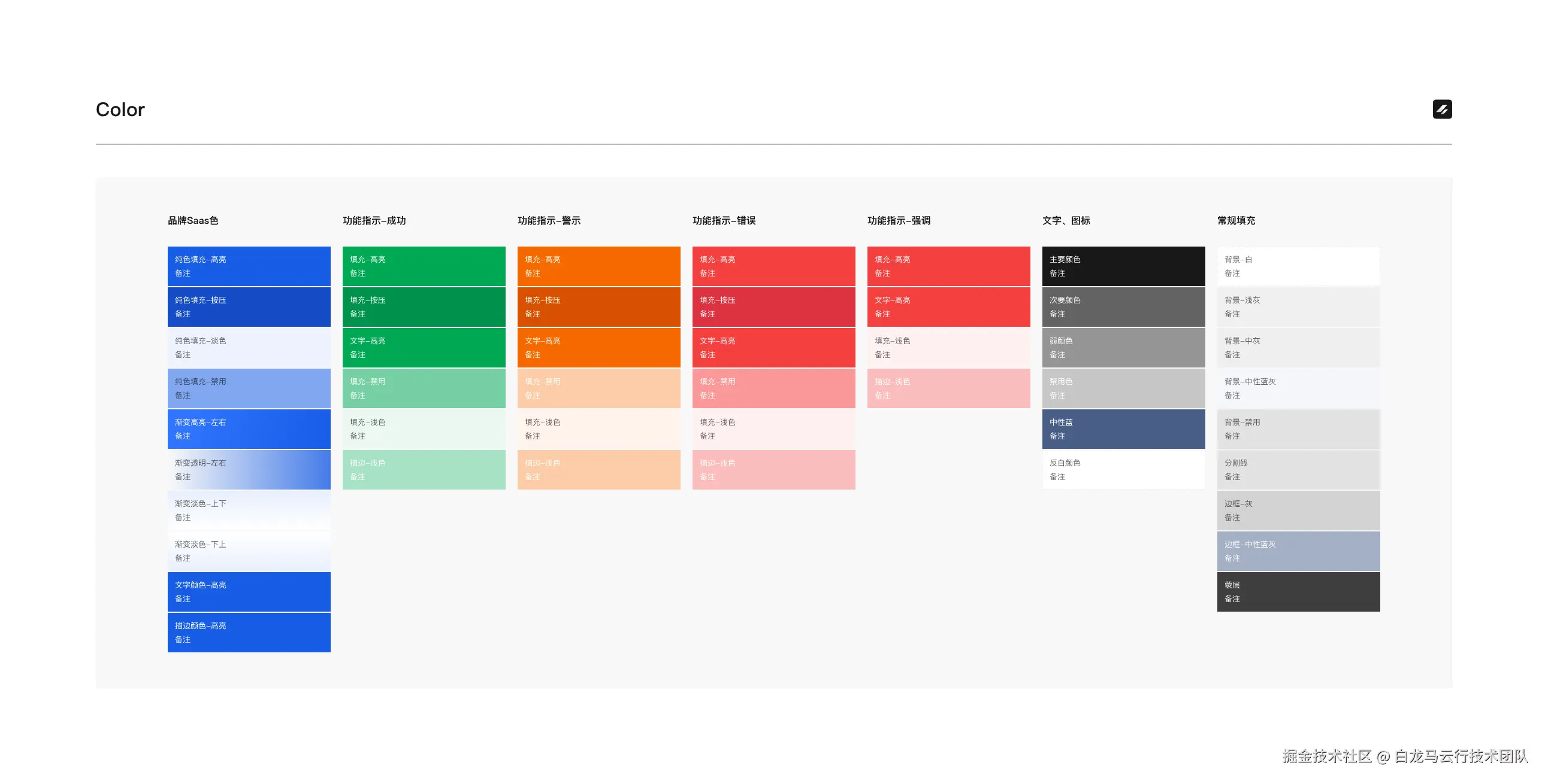 这些系统通用 Token (如间距、圆角、阴影等)通常不会被业务直接修改,但品牌色或主题相关的变量是支持覆盖的。例如 $brand-color 或 CSS Variable --brand-color 可以在不同品牌主题文件中自定义,并通过函数式工具,快速生成不同状态的颜色,实现差异化: