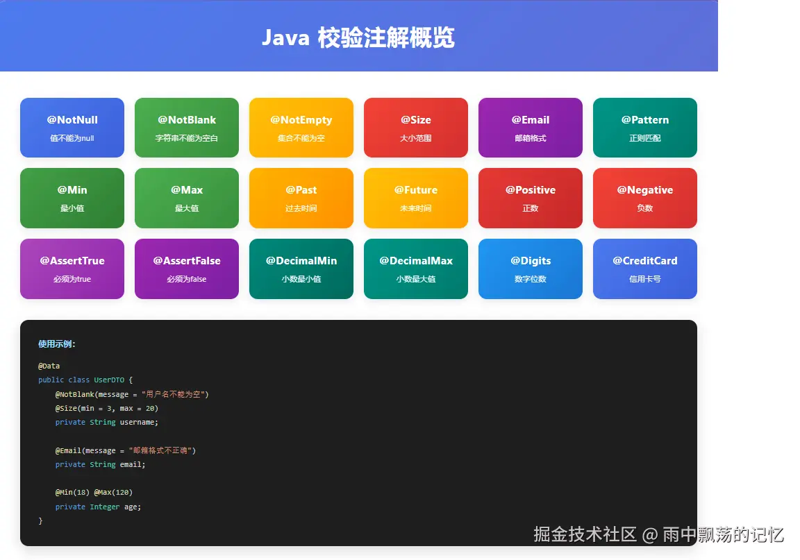 - ✅ 标准化:遵循JSR-303/JSR-380标准