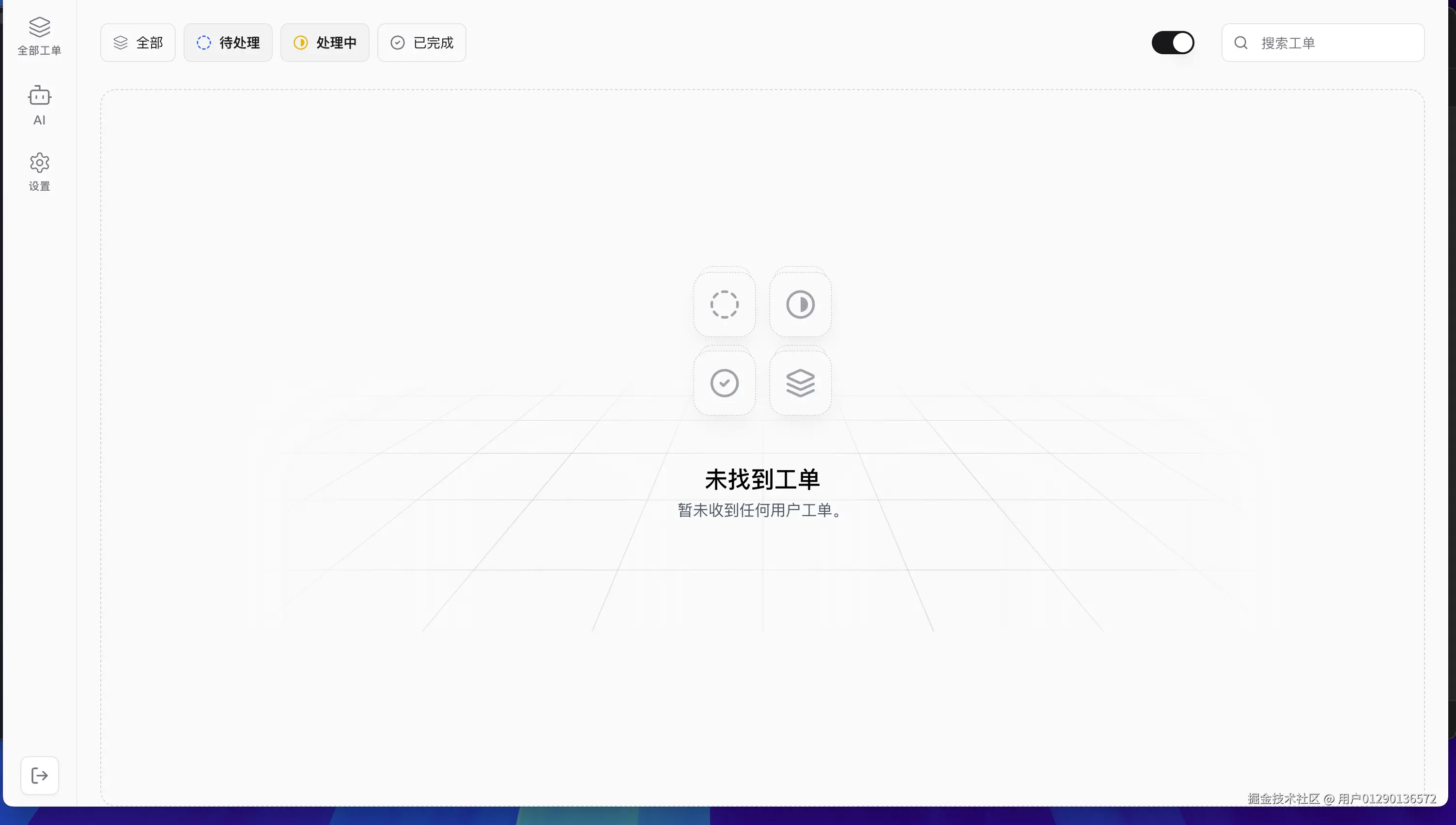 - 查看仪表盘:进入主页,我的工单系统已经出现在桌面上,你可以自己搭建工作流,来运行工单系统的状态