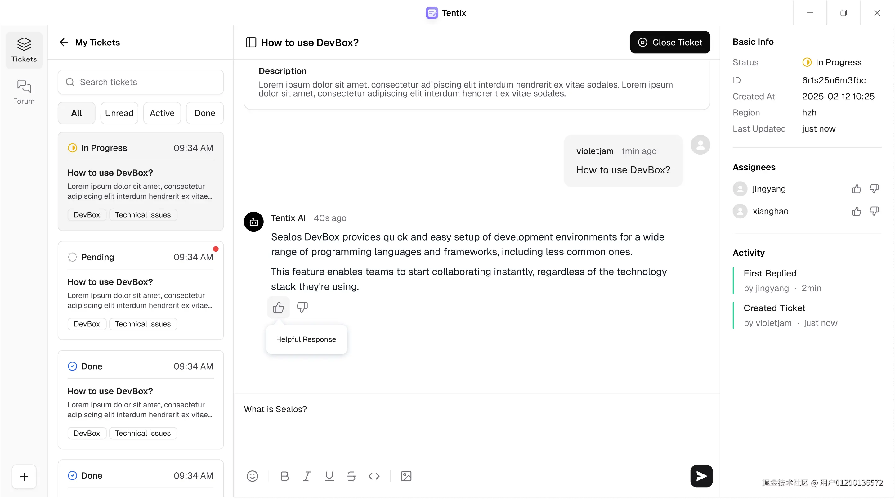 Tentix 是一个非常出色的工单系统,它美观、强大且专注。而 Sealos 则让我这个普通开发者也能在几分钟内轻松拥有并驾驭它,免去了所有部署和维护的烦恼。如果你也想部署,那就快来 Sealos 上部署一个属于你自己的 Tentix 吧!