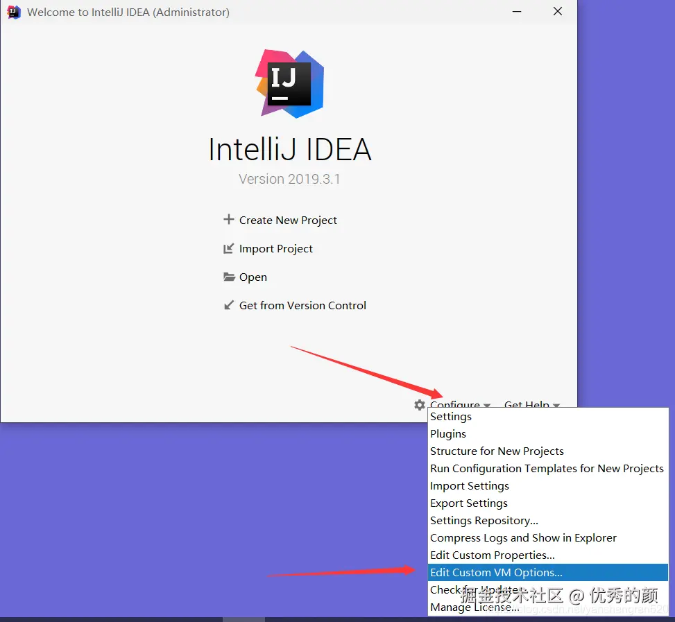 点击你要注册的IDEA菜单:"Configure" 或 "Help" -> "Edit Custom VM Options ..."