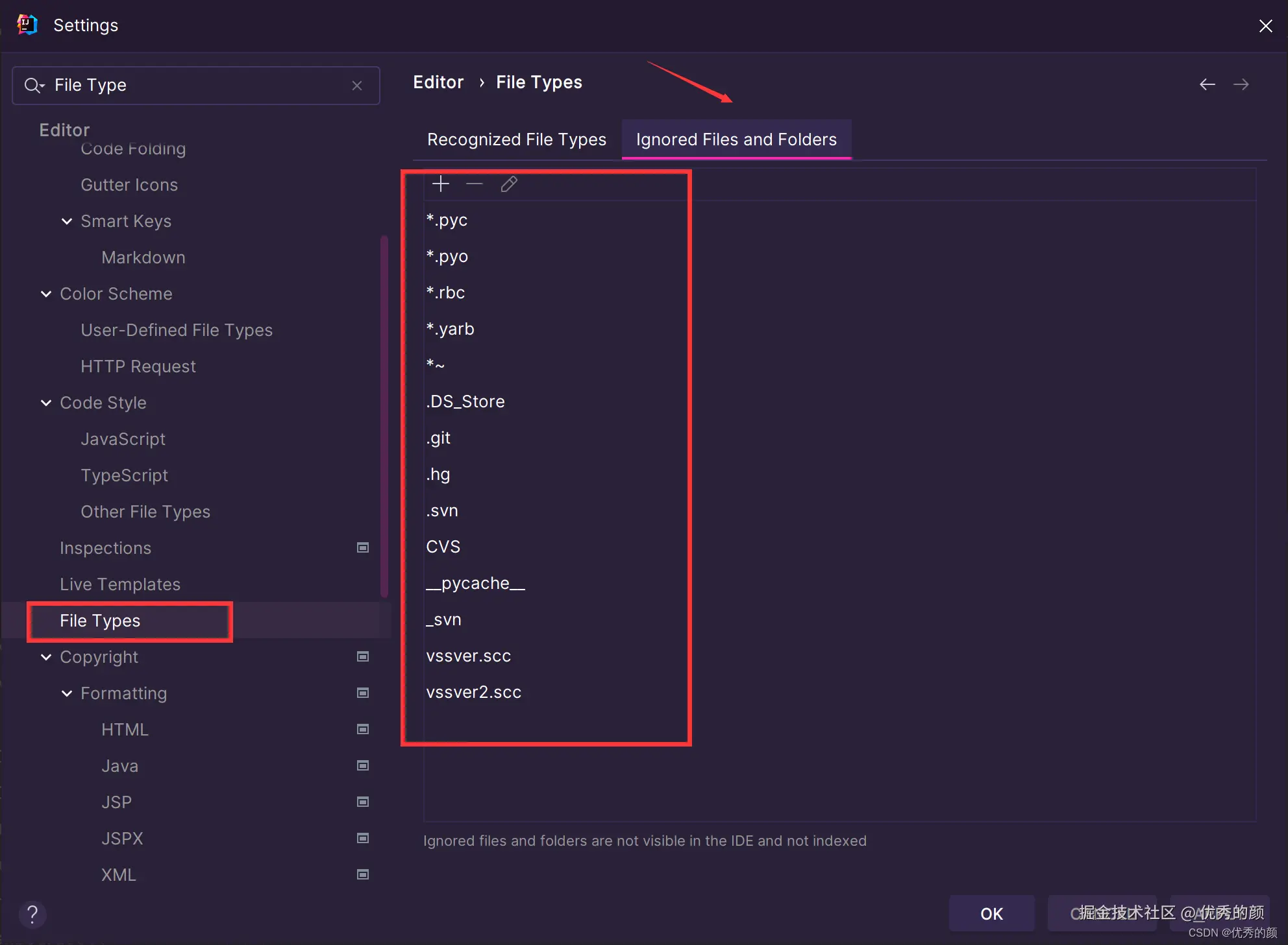 设置Idea忽略的文件后缀