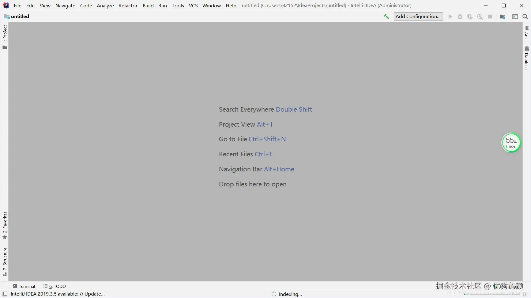以上操作成功后,打开IDEA的样子: