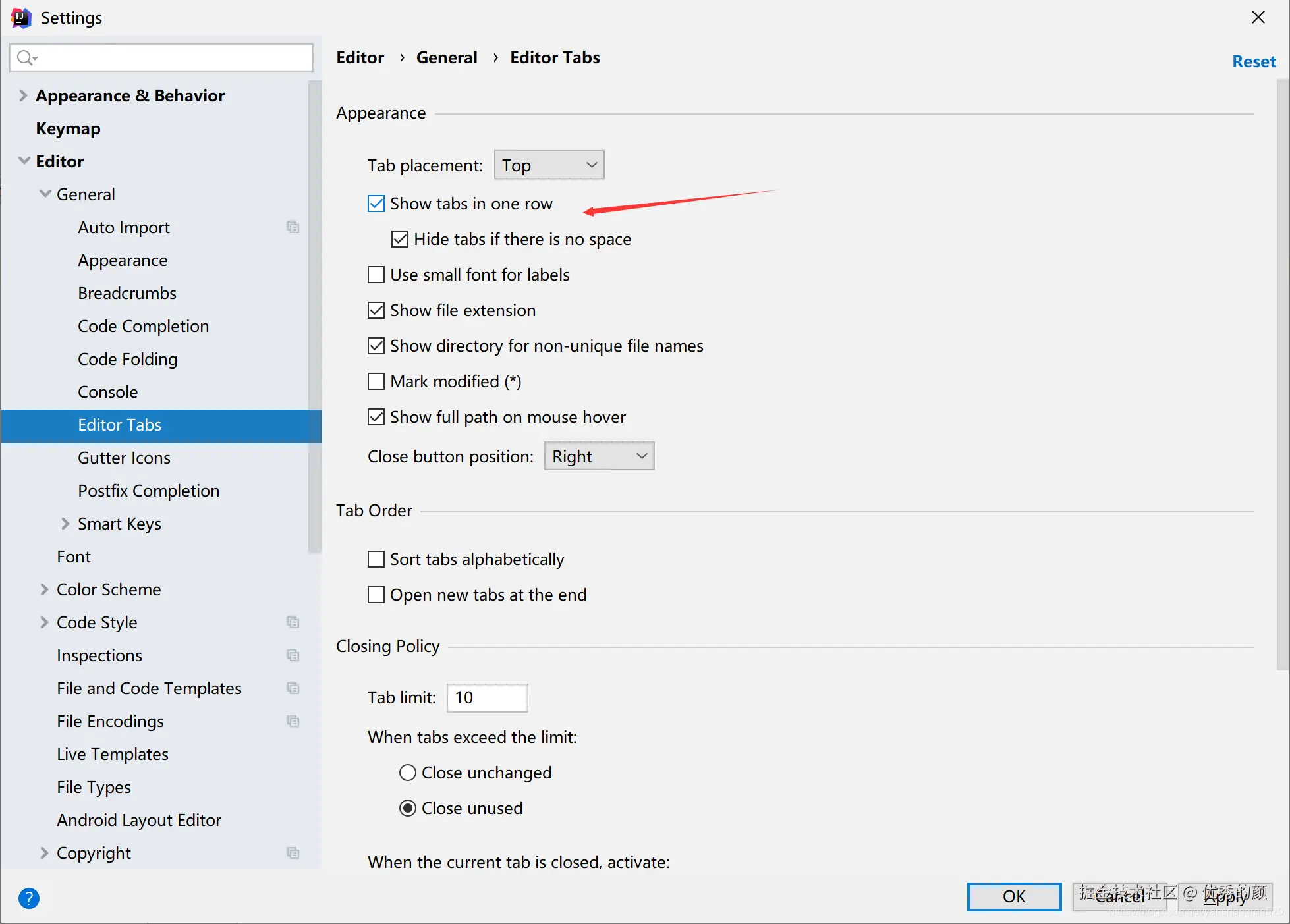 当打开文件过多,Tab标签还会显示省略号... ,取消这个,会多行显示文件标签。