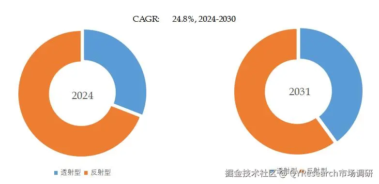 就产品类型而言,目前反射型是最主要的细分产品,占据大约69.1%的份额。