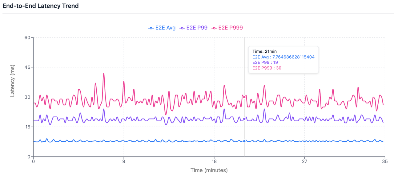 为了在真实生产环境下验证这些架构优势,我们进行了一系列性能基准测试,重点关注客户端观测到的端到端延迟。