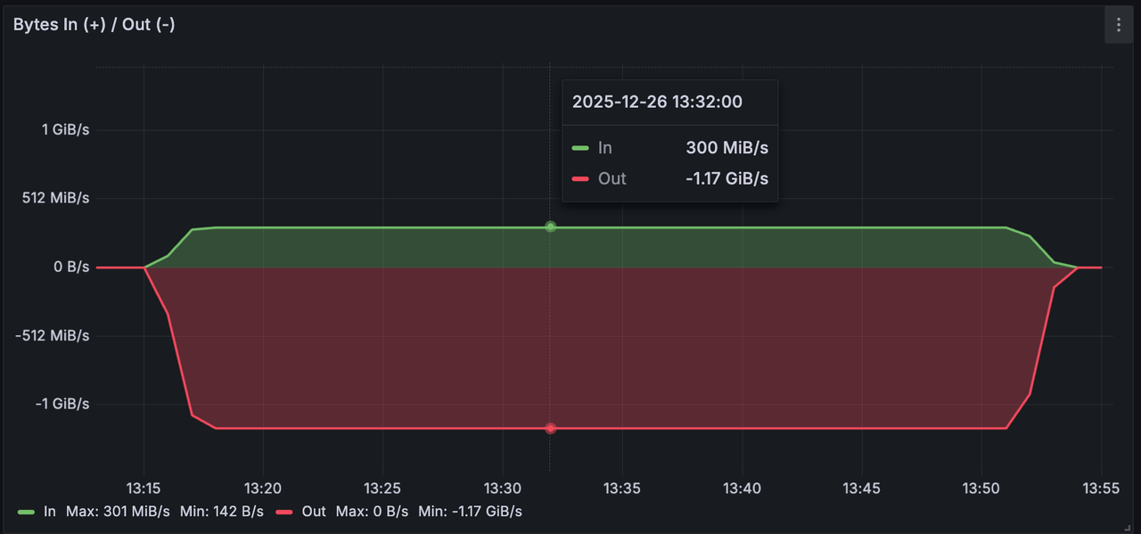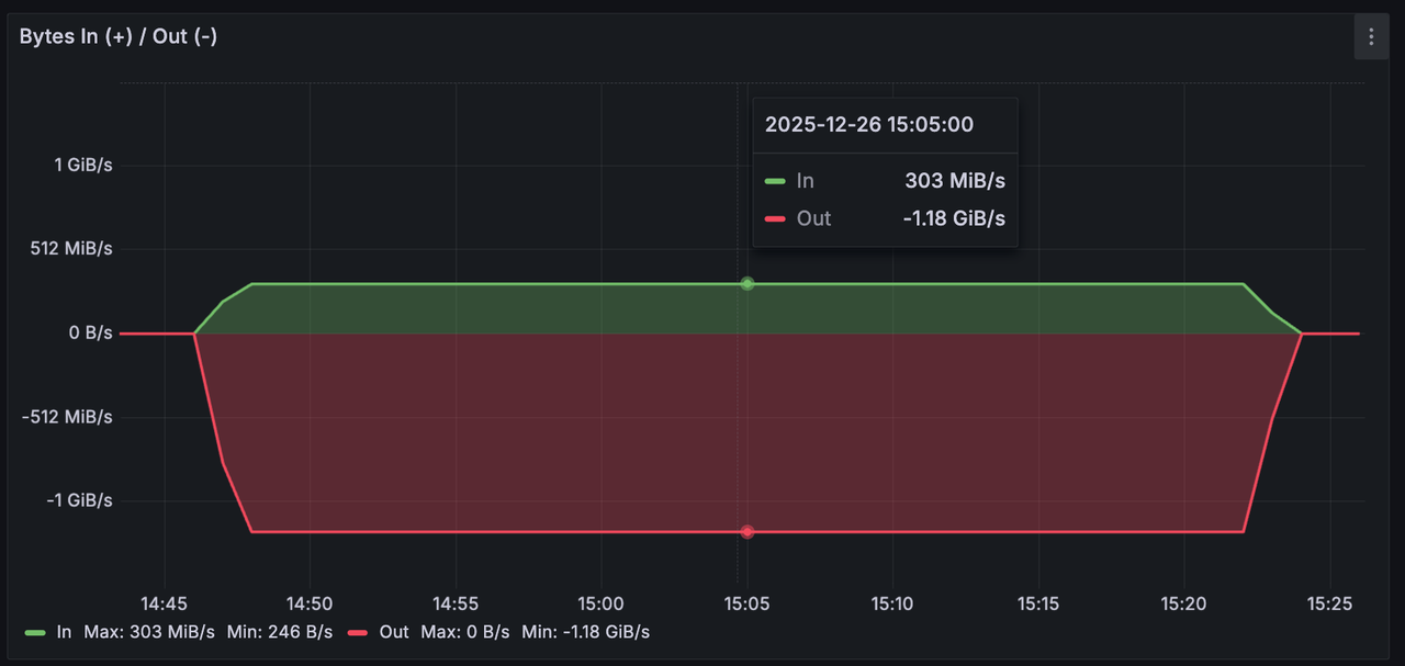 写入总吞吐图 300MiB/s,读取约 1.2GiB/s;