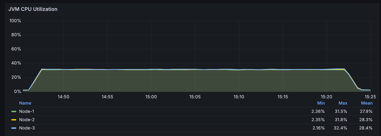 既然极致性能场景存在波动的风险,那么在追求吞吐量与稳定性平衡的生产环境下,AutoMQ 的表现又会如何呢?接下来让我们观察在开启客户端攒批后的稳态测试结果。