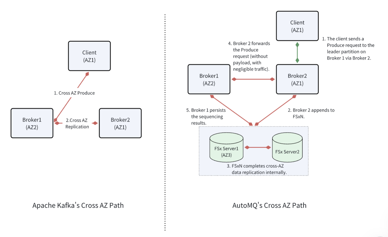 - AutoMQ FSxN 实现原理介绍请参考文章: How does AutoMQ implement a sub-10ms latency Diskless Kafka?