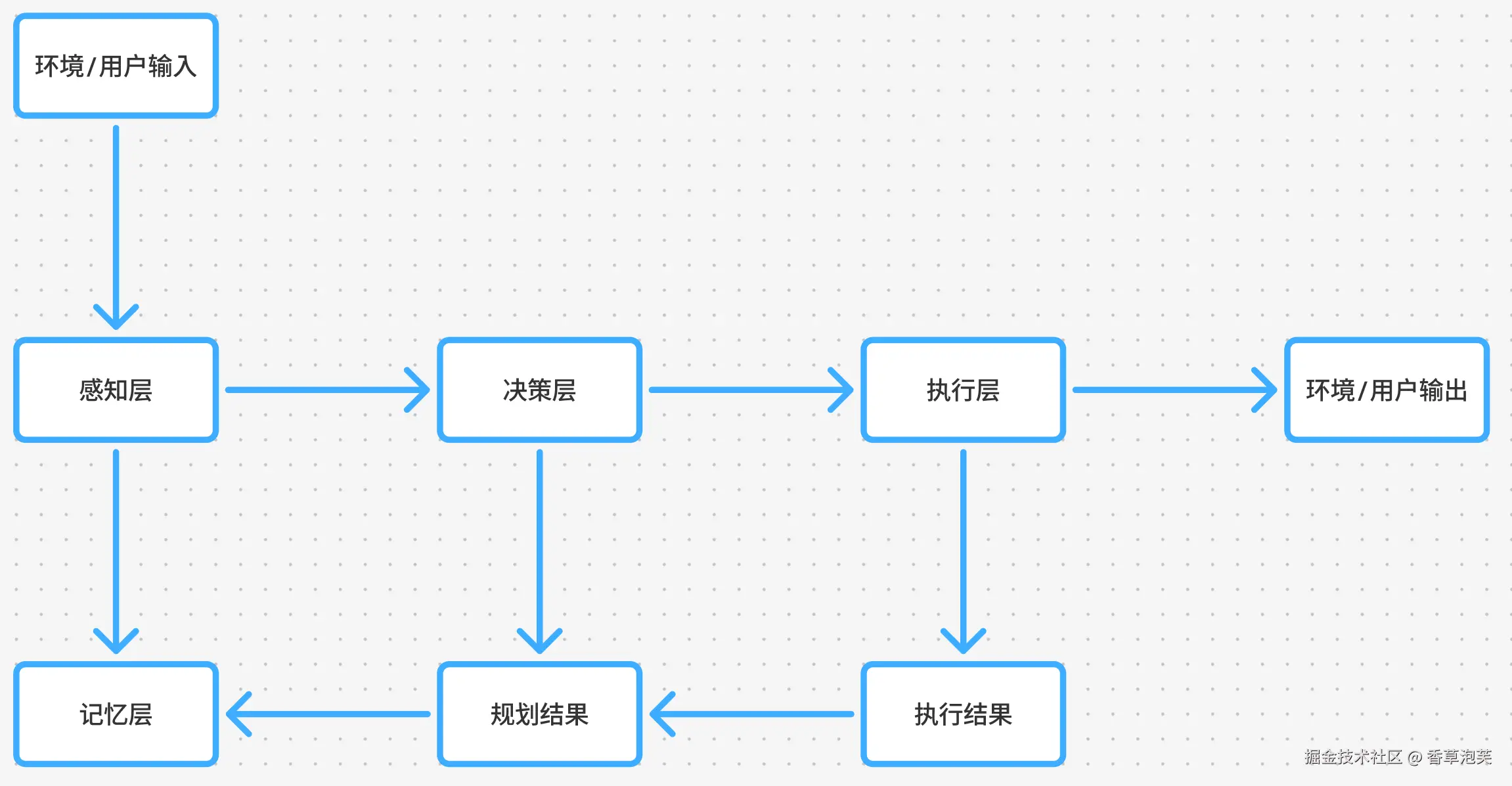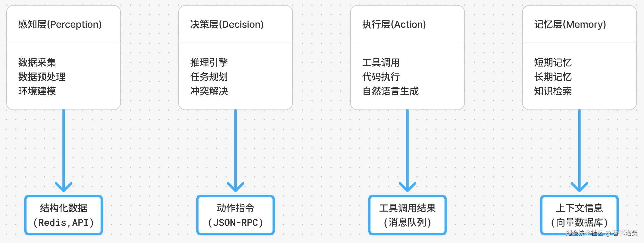 - 闭环反馈机制:确保执行结果能有效反馈至感知层与记忆层,支持持续学习与行为优化