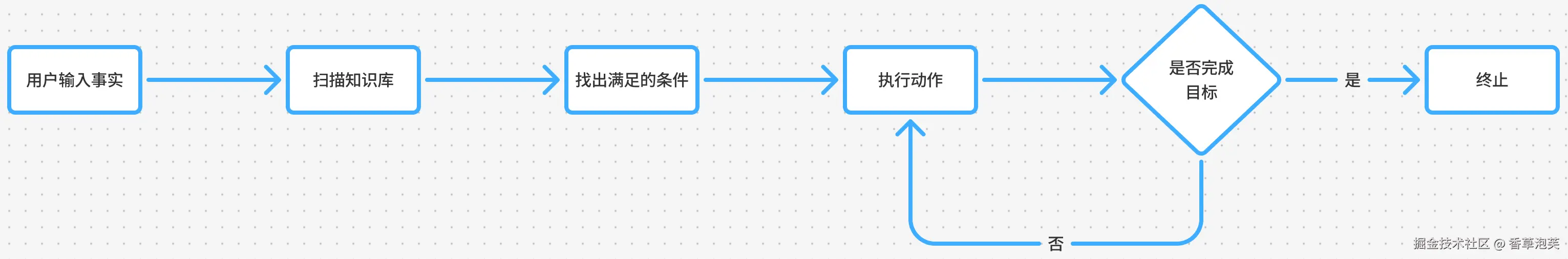 - 循环:更新后的事实库再次触发新的匹配-执行循环。