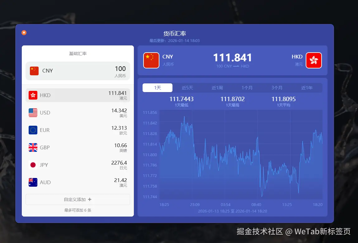 很多朋友问我,如何在办公时优雅地关注市场动态,又不用频繁拿起手机?今天必须把我的浏览器主页——WeTab新标签页安利给你们,这两个金融组件,简直是把浏览器变成了个人的彭博终端!