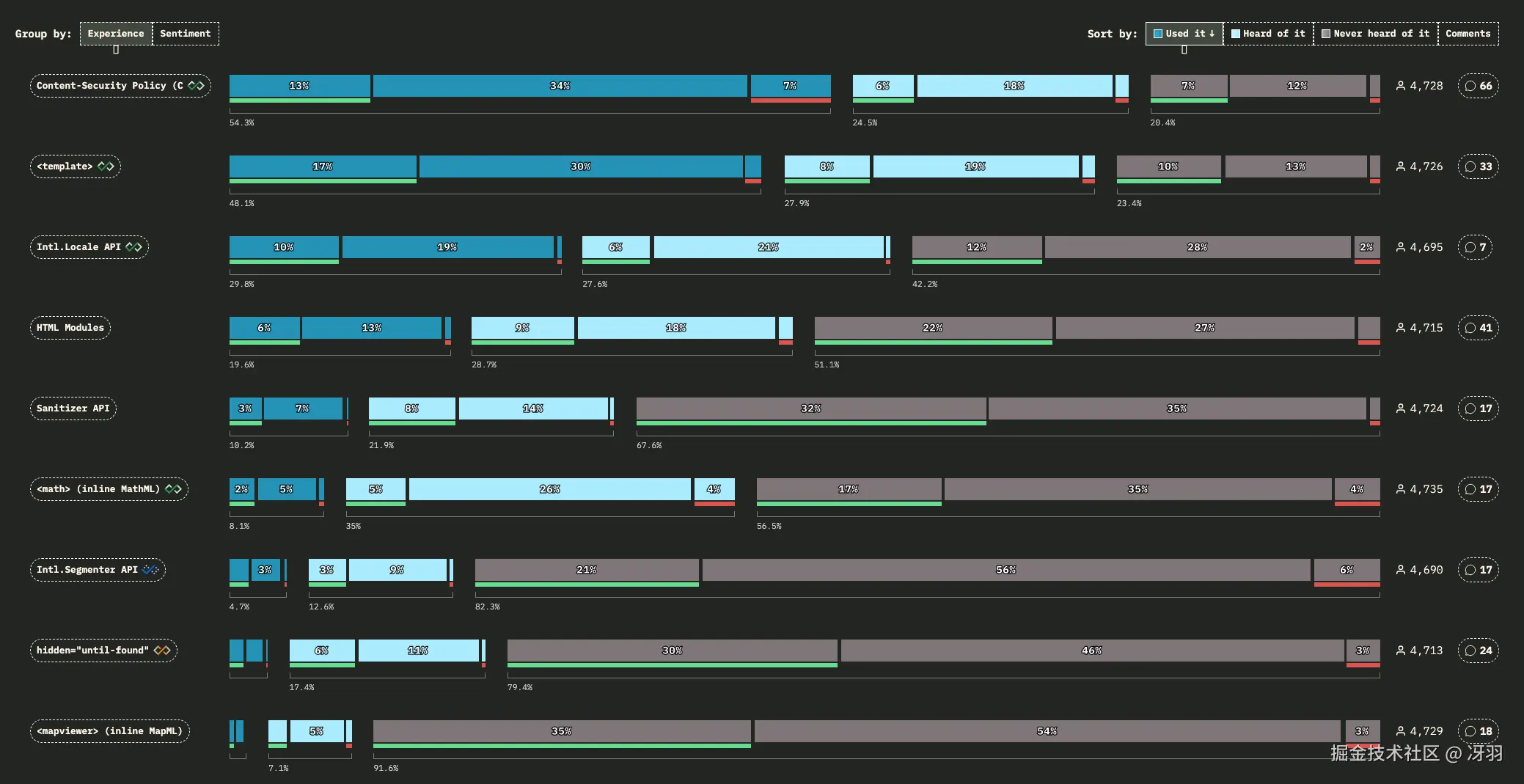 Sanitizer API 获得了最多的正面评价,而内容安全策略则位列最令人失望的功能榜首。