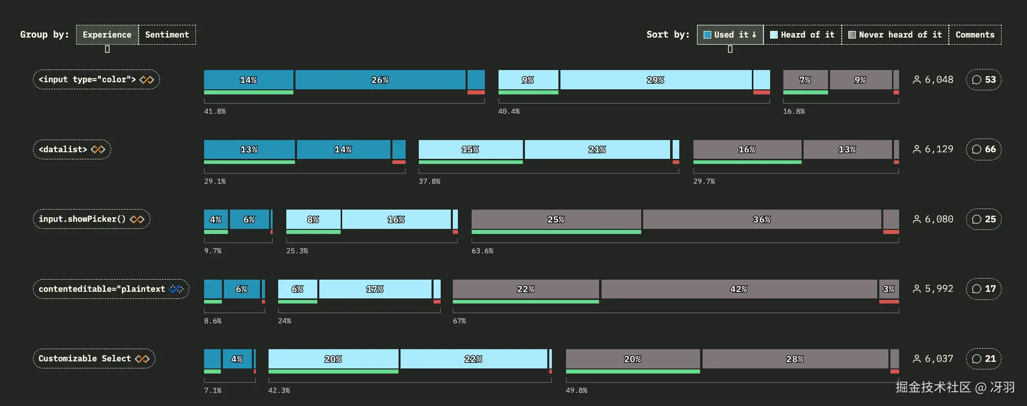 <input type="color"/> 是 2025 年使用最广泛的表单相关功能,41.8% 的受访者表示使用过该功能。